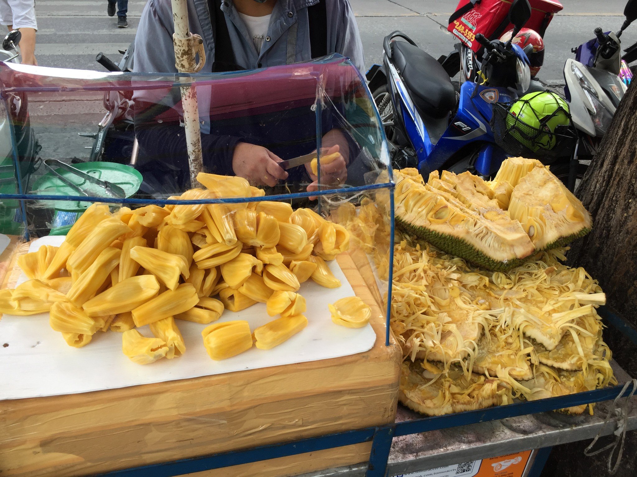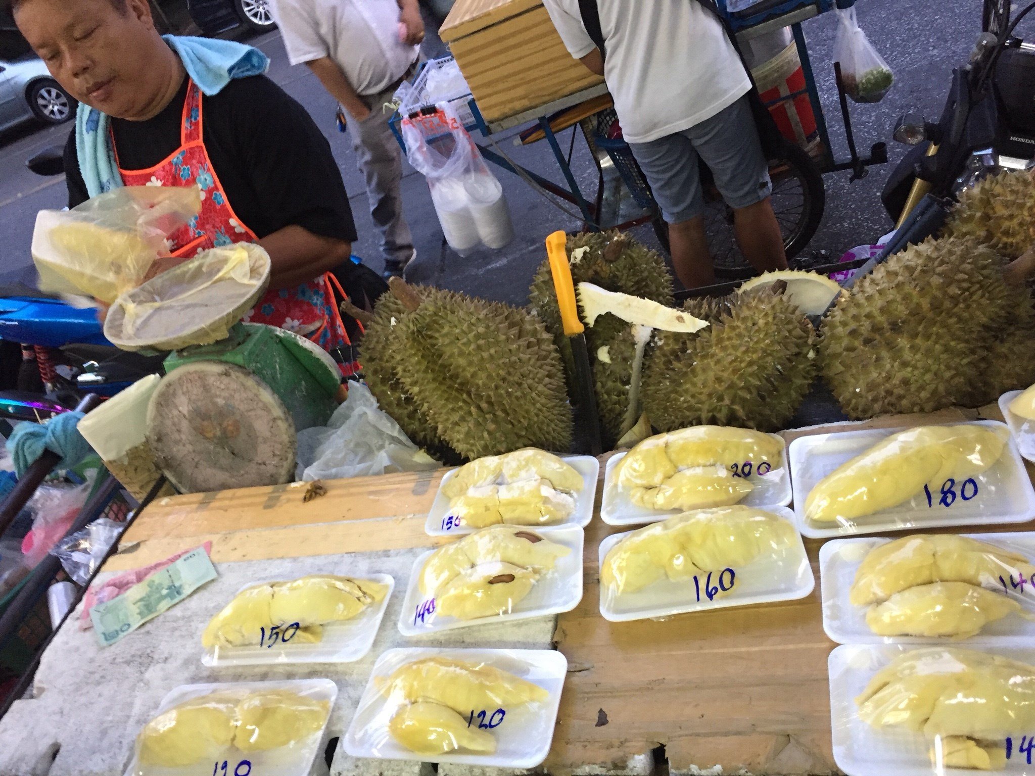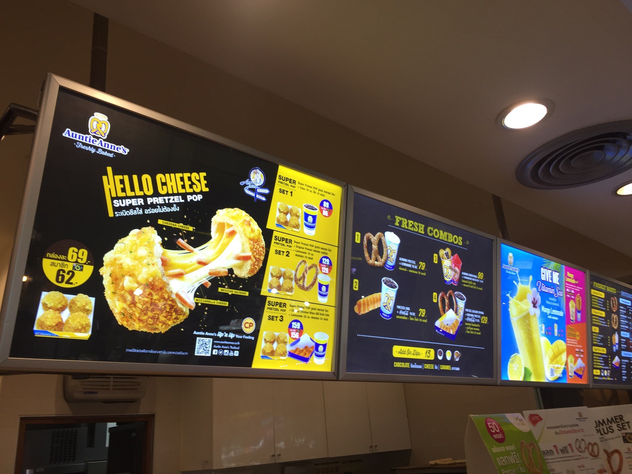 旁边的一家类似于爆浆鸡球的店,光看上面的展示图片就觉得很有食欲啊,而且4个大鸡球只要62B,果断入手,带着一会去餐厅吃。