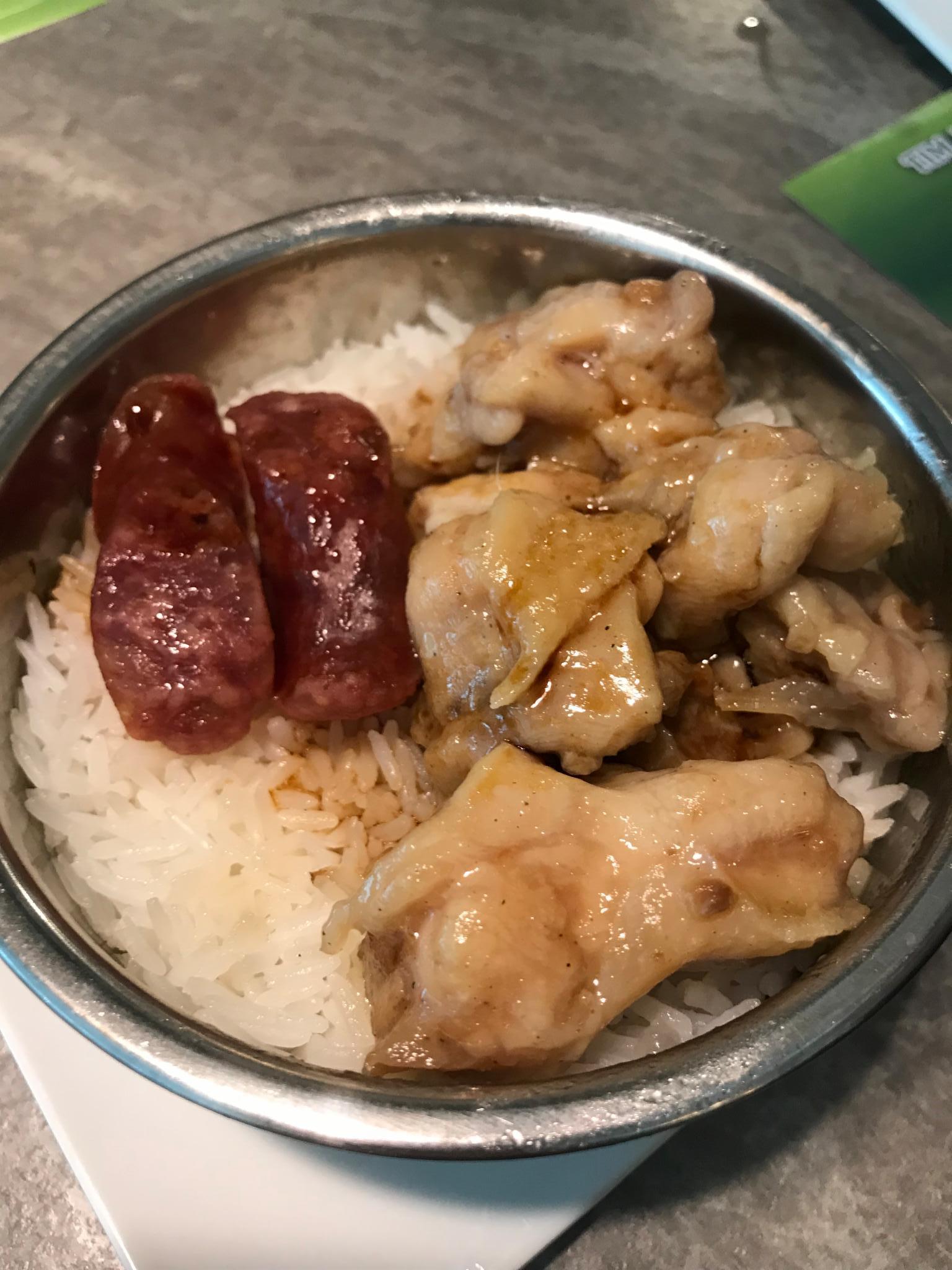 腊肠滑鸡饭,这个好吃,鸡很嫩,符合我的口味,