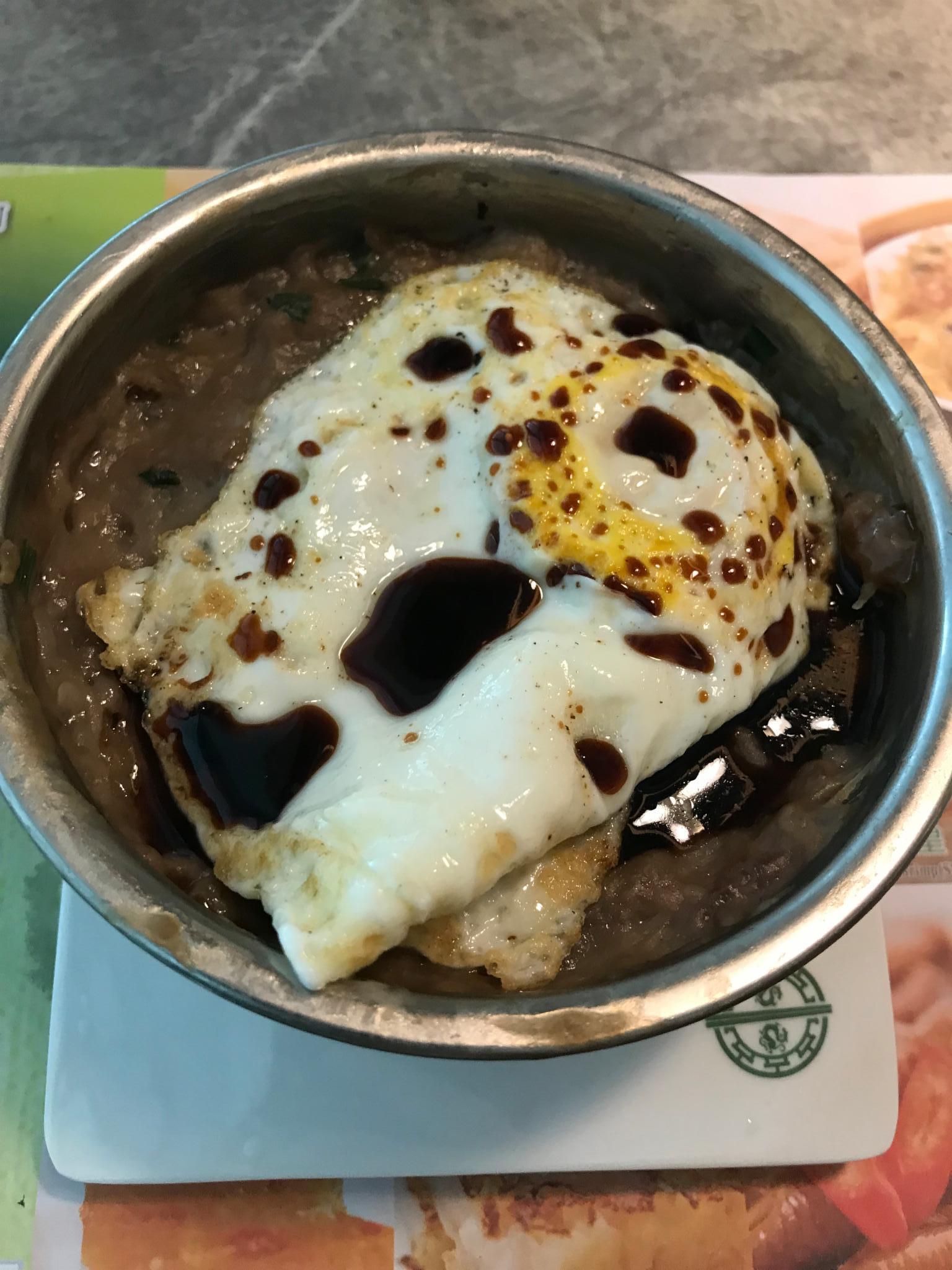 牛肉滑蛋饭,大概就是这个名字,牛肉很嫩,里面貌似有姜末···