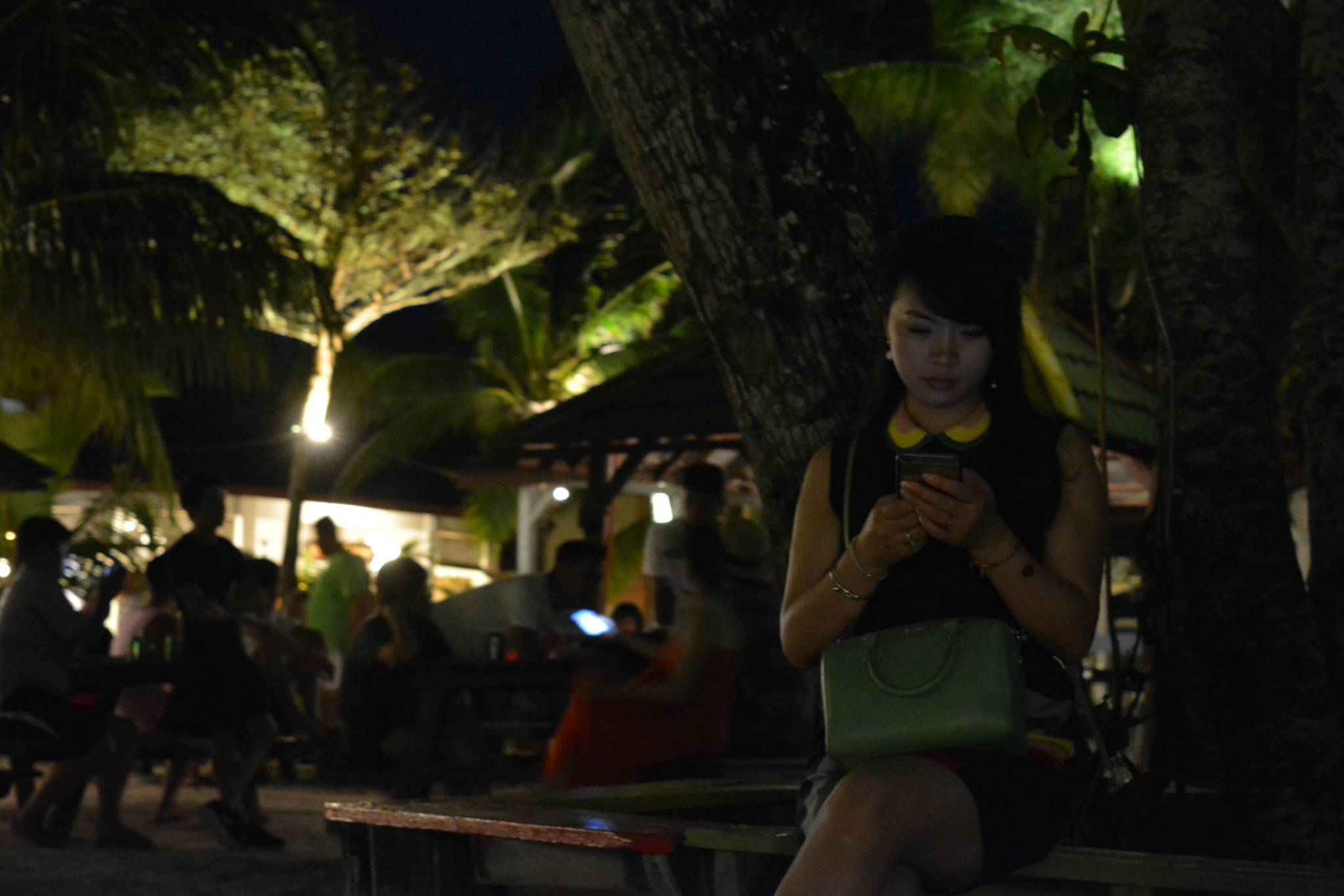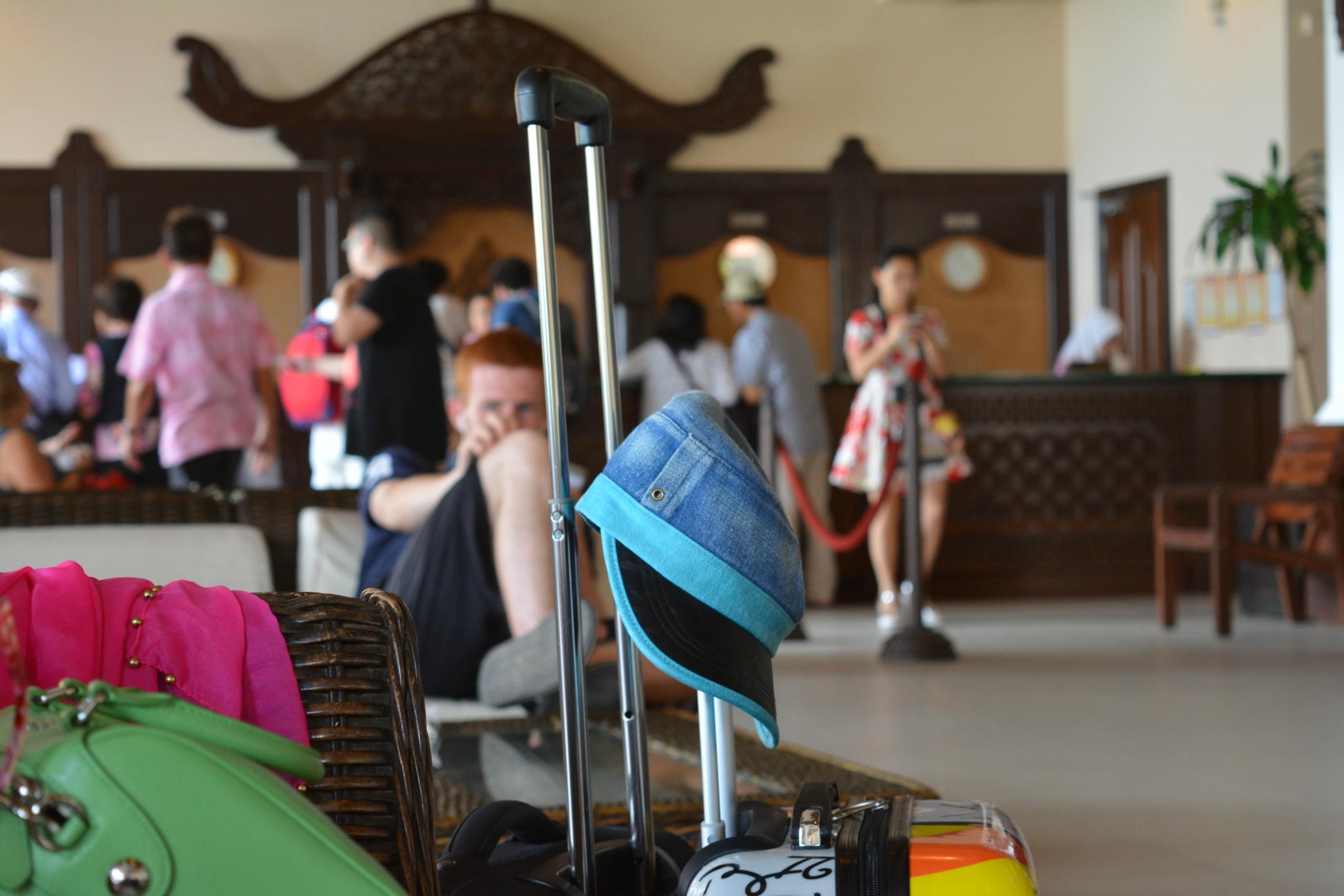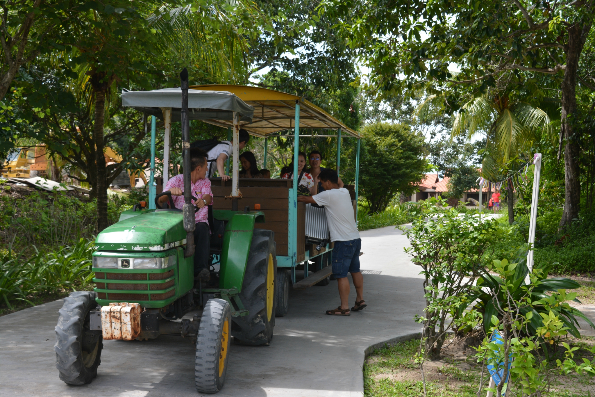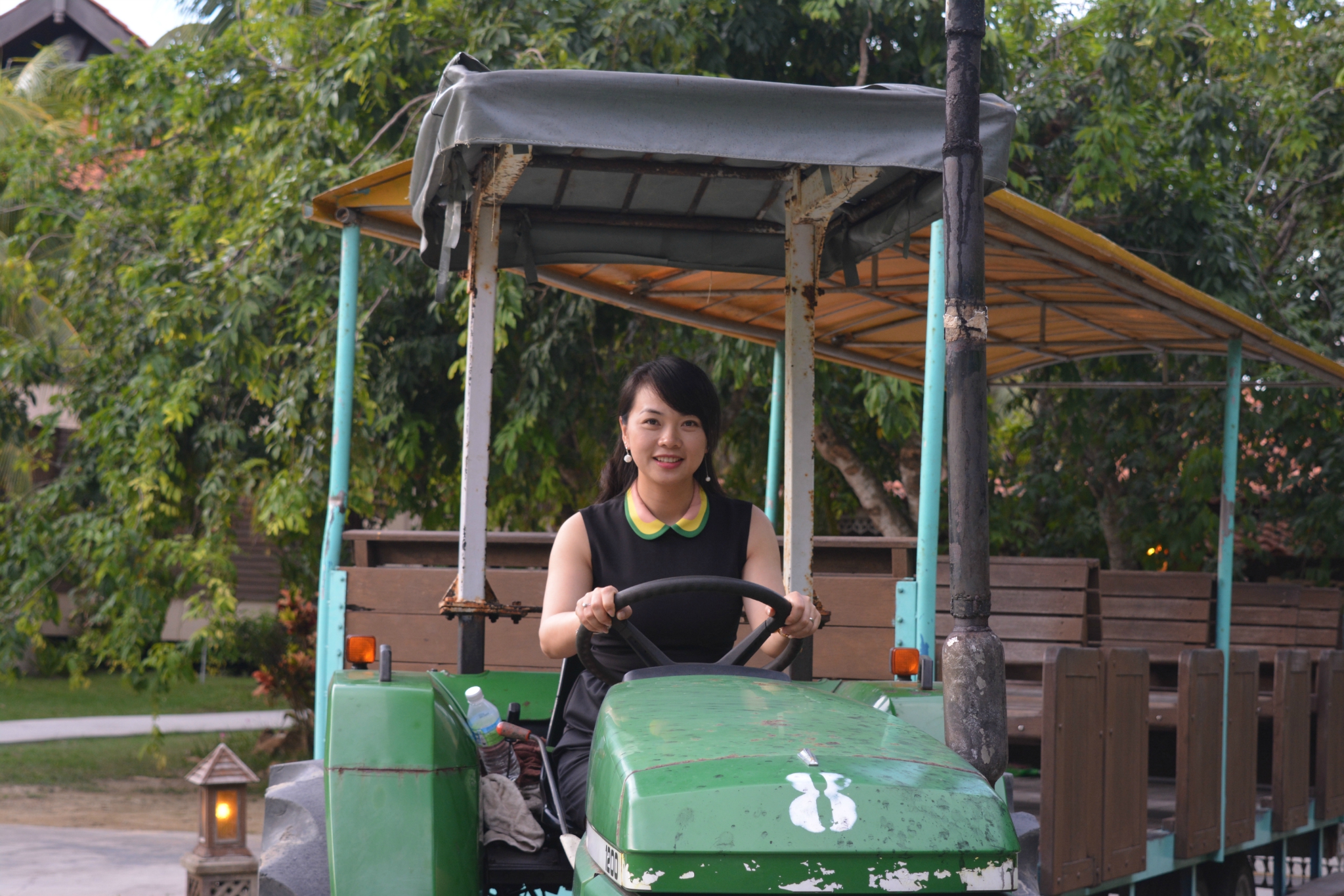 历经一个多小时的海上颠簸,终于抵达热浪岛。码头边上有等侯着的观光拖拉机载着我们去往酒店。