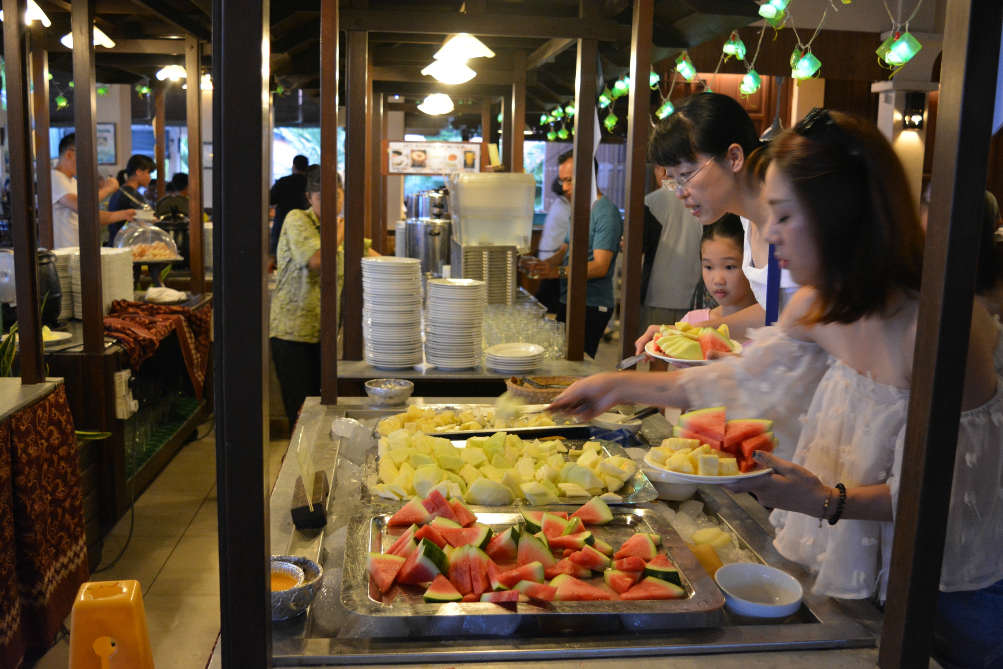 2楼餐厅完全是自助餐的,主食,蔬菜,烤肉,甜品,水果和小吃加起来估计有上百种品类吧。