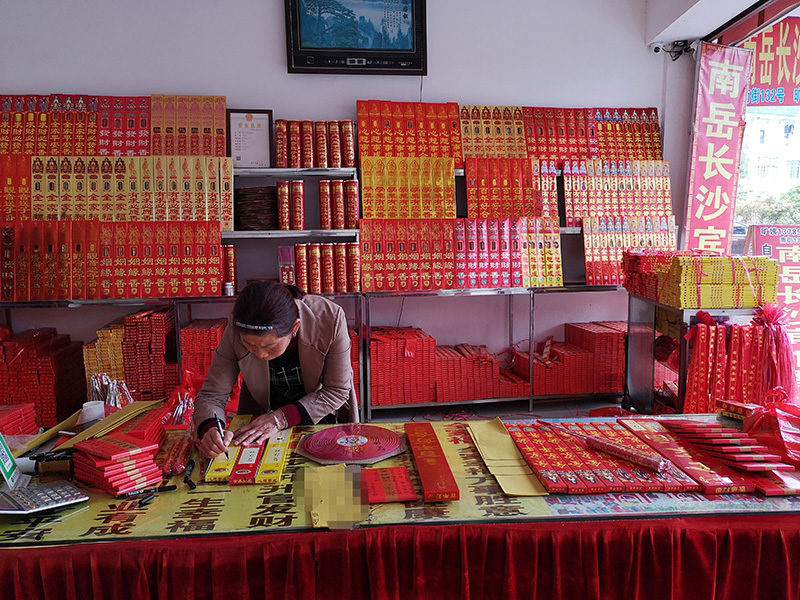 南岳衡山家家处处都有香请,每户香行都有各自经 营方式。每位朋友前往南岳衡山来一趟都是非常不容易,一定要认真负 责接 待好。我 们不仅仅是请香,更注重写香重要性和进庙朝拜方法规矩。一定要好好认真写详细。这除了香包上要书写信息,还要在供奉黄纸书写一份信息,也是至关重要(不 外 传),寓意供奉祈福香菩萨更容易收得到。因此很多人心愿达成很快。虽写这个费时间精力,但是,在 这里请香不管多忙多累多晚都会花些时间来写这个黄纸,认认真真书写对待的助力每位早日如愿。