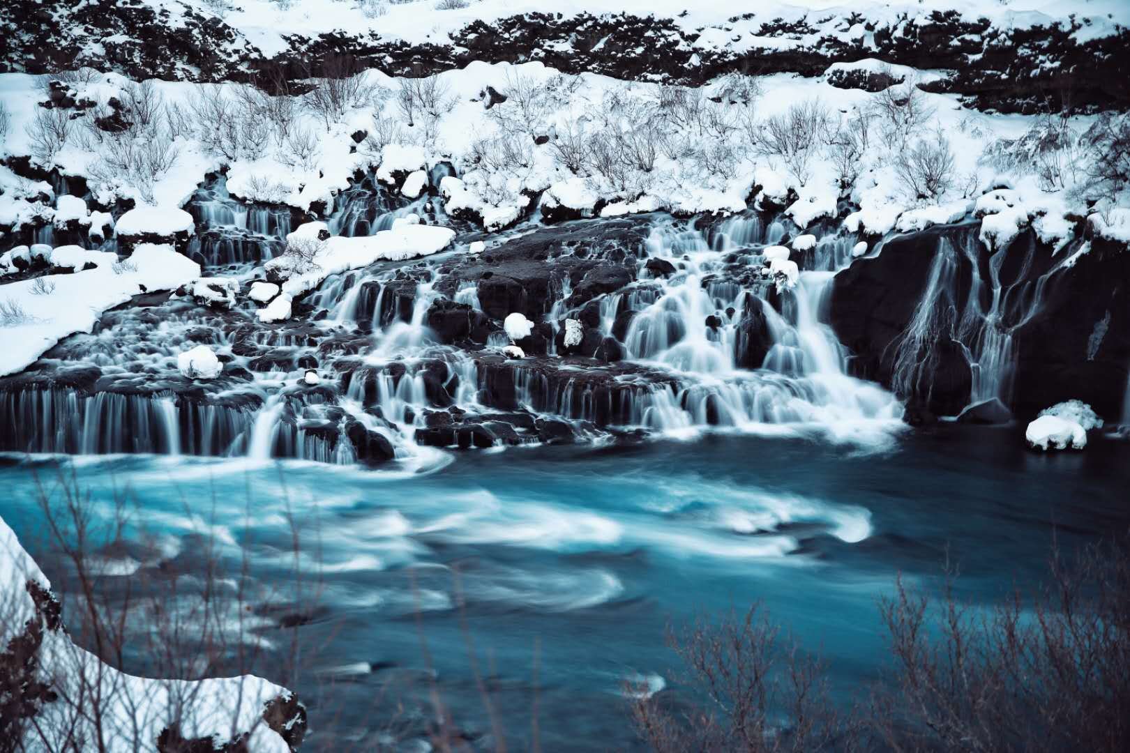 赫伦瀑布Hraunfossar Falls熔岩瀑布