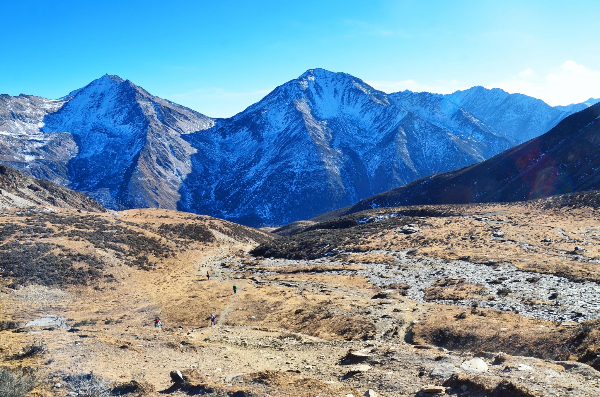 再继续往前走,过了鸡棚子后,就会达到大二峰的分岔路(海拔4200米),往左是去大峰大本营,往右是二峰大本营,是整个徒步中为数不多的分岔路,去的朋友们一定要看好,千万不要走错了。