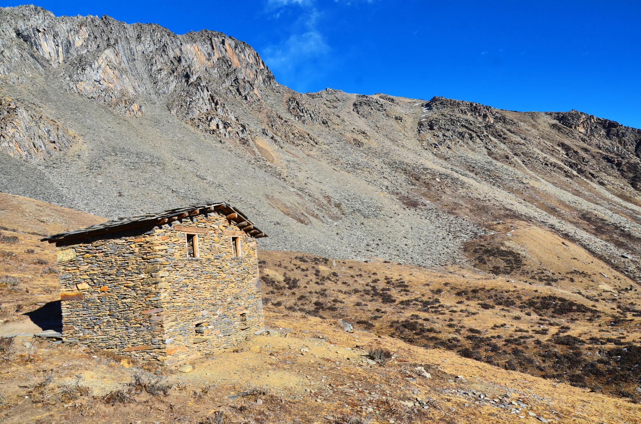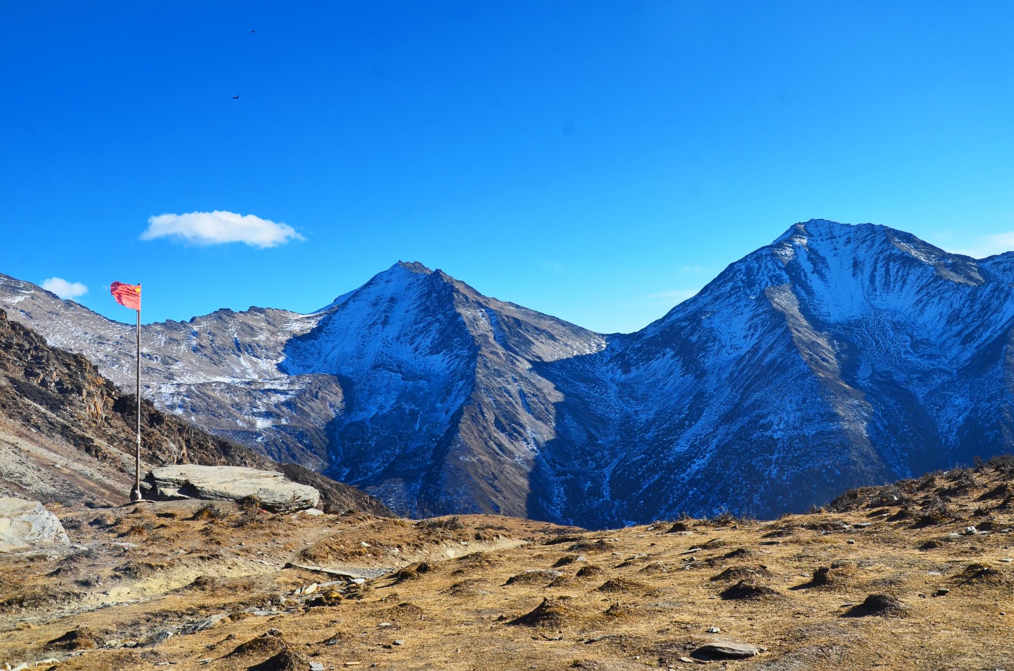 继续往前走,看到一个布满旗帜的木屋,就是打尖包了。打尖包海拔3700米,有热水和食物提供,是整个过程中唯一的补给点,虽然价格不菲,不过大多数驴友依旧选择在这里休息,吃午饭,因为之后的坡度会有所提升,也会穿过树林和小溪。