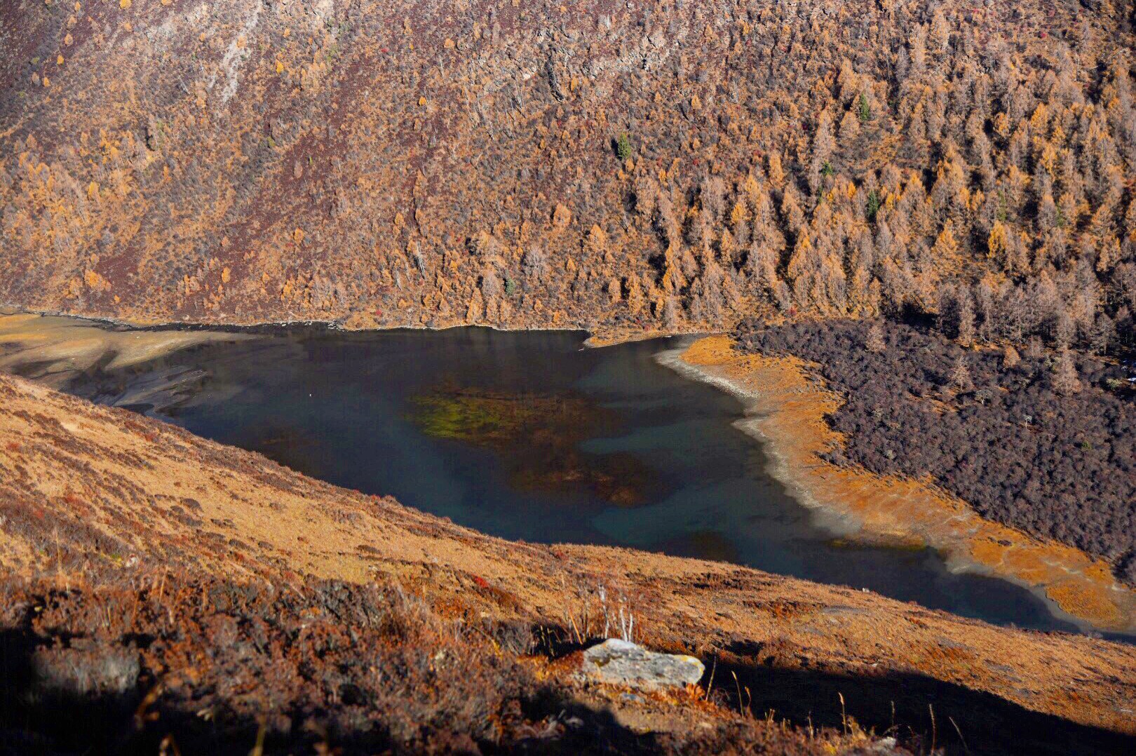 在从分岔路到大本营的路上,还会路过花海子,从上方俯瞰,是不是还有点航拍的感觉。