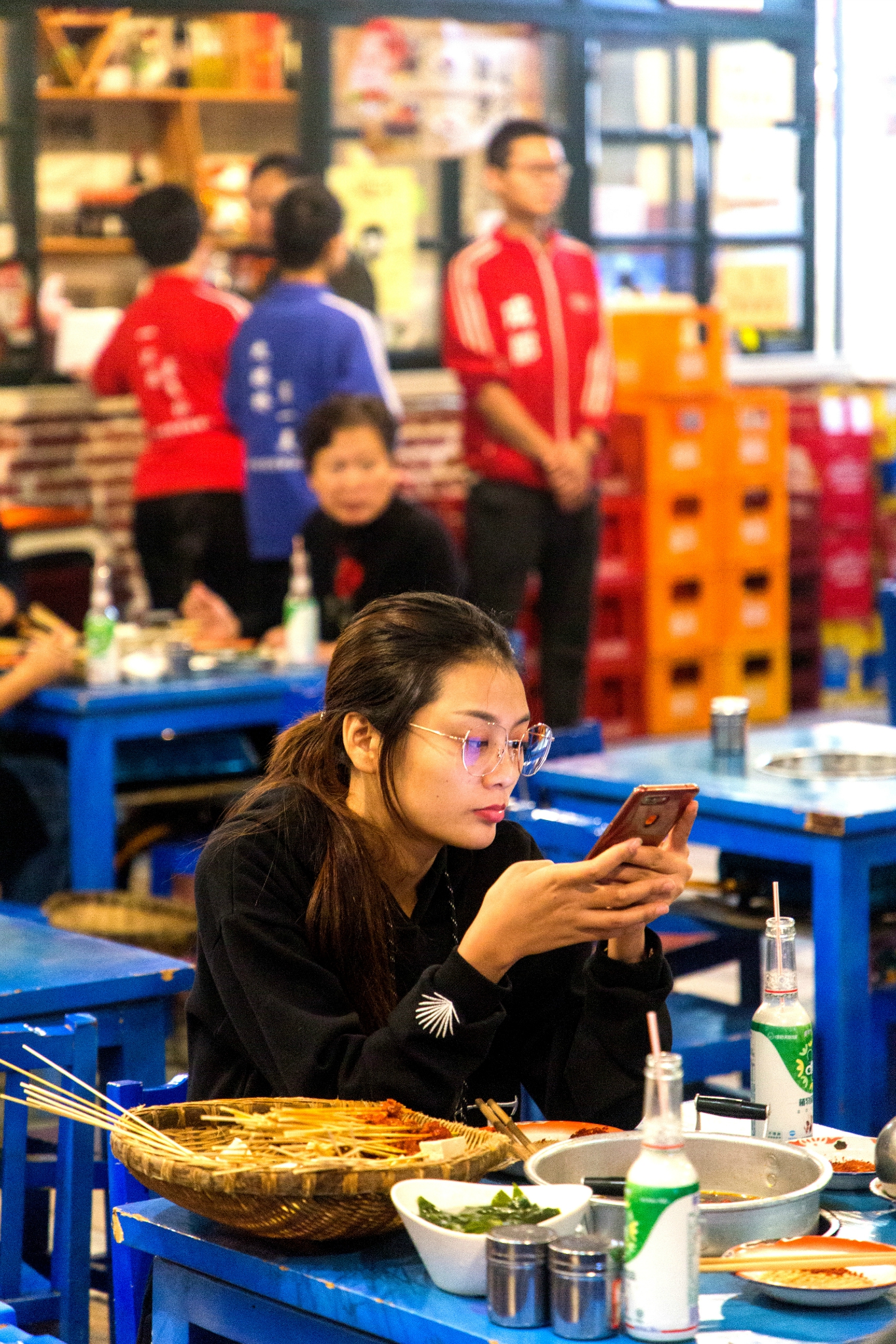 吃串串,吃的就是一个氛围,约上三五好友,围在一桌一起吃,那才是最有意思的生活方式。马路边边的上桌率实在惊人,整个店里一直都是满桌的样子,我们刚刚准备离开后面就有人过来占位了。