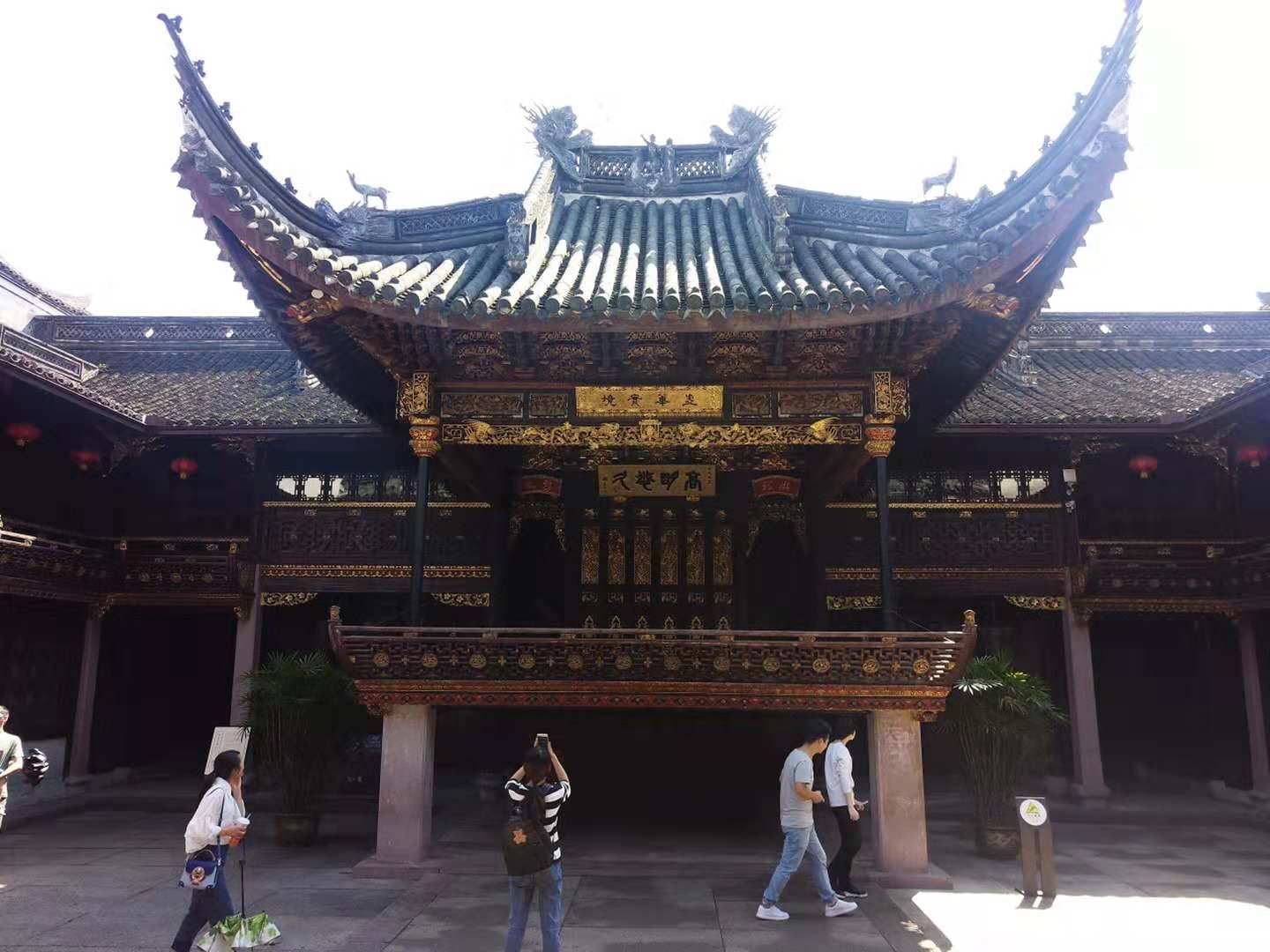 台上悬挂“高明悠久”及“虚华实境”匾