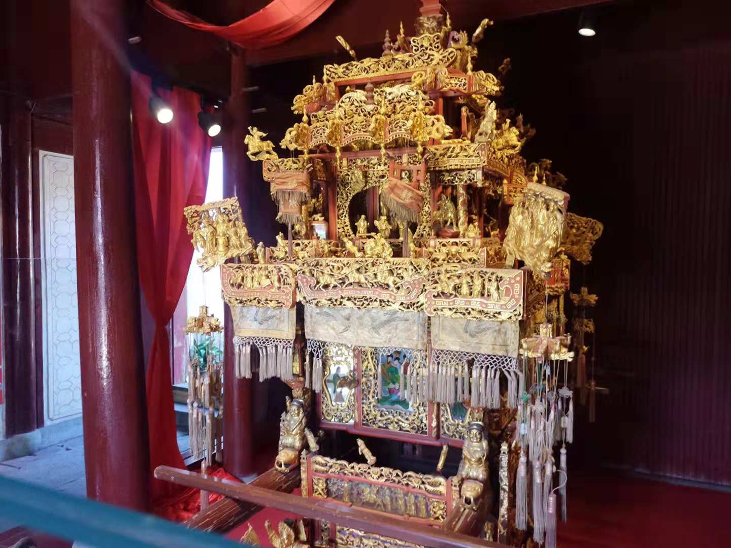 十个工人用了三年时间一万个工时打造,所以称为“万工轿”。 这样劳力密集,精雕细琢的花轿是什么样呢? 看看这雕花,这漆工,绝对的奢华。 想想看,要是能坐着这样的轿子出嫁,多么高端大气上档次!