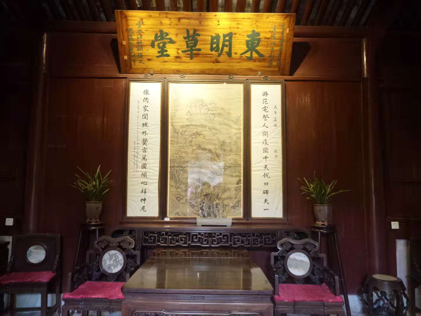 东明:范钦,字尧卿,号东明。草堂是自谦的意思。这里最初是范钦的书房,用来藏书,读书。后来无法容纳增加的藏书,后来成为家里的客厅。