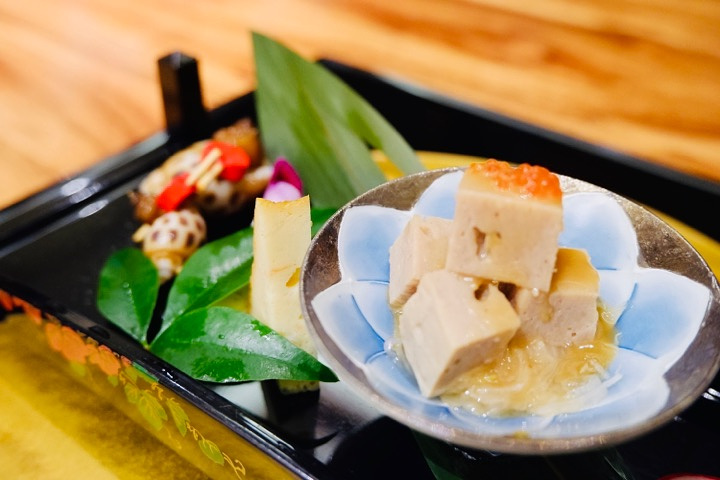 清晨入古寺,初日照高林。 曲径通幽处,禅房花木深。 山光悦鸟性,潭影空人心。 万籁此都寂,但余钟磬音。 位于月湖畔的汇金小镇—诗情湖西 这是一座诗情画意的小镇 地理环境优越 里面是各种名胜古迹 5A级景点“天一阁”就在旁边 所以来这里,环境清雅,书香阵阵 中国和日本的文化根源其实是一致的 饮食文化也有许多相似之处 尤其是在禅意上 同样的幽静深远 涵山道.极上日料 他就在汇金小镇中 停车坐爱枫林晚的旁边 地点选的是极好的,这里,足够的静谧、舒适 闹市中的僻静之所 低矮的房屋,貌似已经穿过云层来到了日本 所有的装饰都满满的日式风 移门,进入以后 首先换上舒适的拖鞋,然后找到你的房间 天冷了,但是里面一点都不冷,地板是暖和的 暖气特别足,很舒服 大厨乃是日本的三四郎 米其林怀石料理大厨 在这里,你不用去日本 也可以享受到最正宗的怀石料理 今晚我们也一样,享受的是今日份怀石料理 前菜和开胃酒 先和一杯梅子酒,开开胃,让你的味蕾复苏 蟹肉鱼糕搭配黑猪火腿粒,最后还有南海花螺 花螺很是用心的为你插好了竹签,吃起来特别方便 虽然花螺的壳很硬,但是螺肉却非常的入味,可见大厨的用心 来一碗豆腐汤稳定军心 ------菌菇莼菜豆腐汤 日料,你要喝的很大声,正面这份料理特别美味 所以喝汤没有勺子,让你大声喝汤哦 莼菜真的很像荷叶,豆腐在水中展开,这一碗汤犹如静夜雪莲 特别美好,汤汁鲜美,只是今日的稍微咸了一点,不过口感还是极好的 刺身:金枪鱼、大竹夹鱼和帝王鲑三文鱼 大竹夹鱼正是吃它好时节,味道鲜甜可口;金枪鱼肥而不腻;厚切的三文鱼肉质肥美;如果你实在不能吃生的,可以请求大厨的帮助哦,你会爱上这里的味道和服务。 最好吃的煮物:红烧真鲷鱼 这里的香菇是真美味,多汁鲜美,特别赞;五角星形状的胡萝卜也很好吃哦,不吃胡萝卜的人说他好吃了,可能是颜值在线了就变得美味了;鱼块的调味特别赞,平时最讨厌鱼皮的味道,这个被我吃完了,真的好吃,无法形容。 油腻的天妇罗-带鱼裹牛蒡 这里不再那么油腻,变得有些小清新;还有紫苏叶子,当我嚼着紫苏叶子的时候,一直在想我每天涂抹的紫苏防晒霜,那是不是被我吃进去的防晒叶子,那我要从内而外的防晒了,纯属瞎想。 和牛:小小的一口一块 肉质鲜嫩,却被小番茄夺去了我的目光,仅此一粒的小番茄特别的好吃;值得您单点,牛肉粒是真材实料。