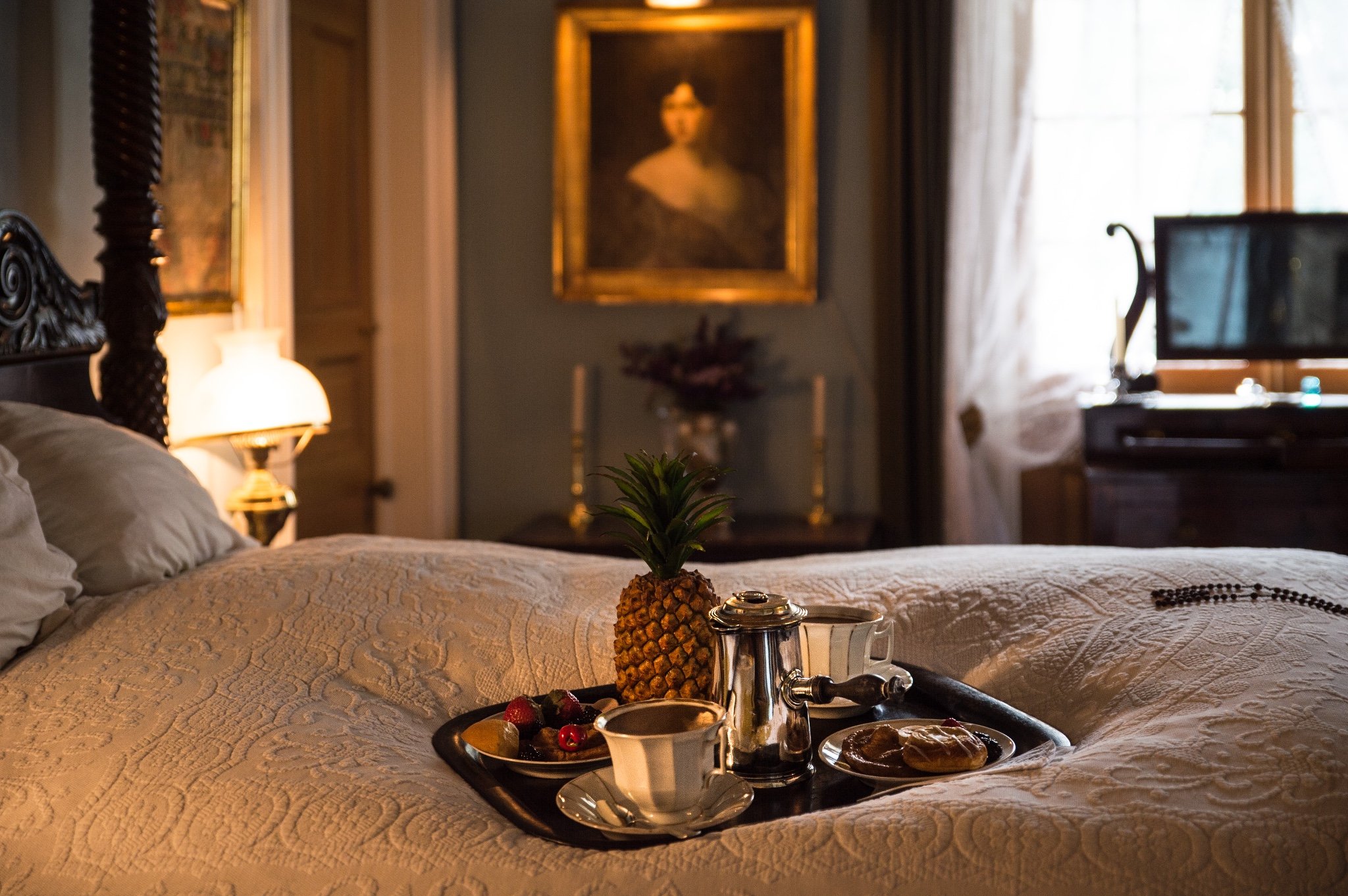 房子里床上摆了一个这样的早餐碟,据说当主人早餐送上菠萝的时候就是在下逐客令了。