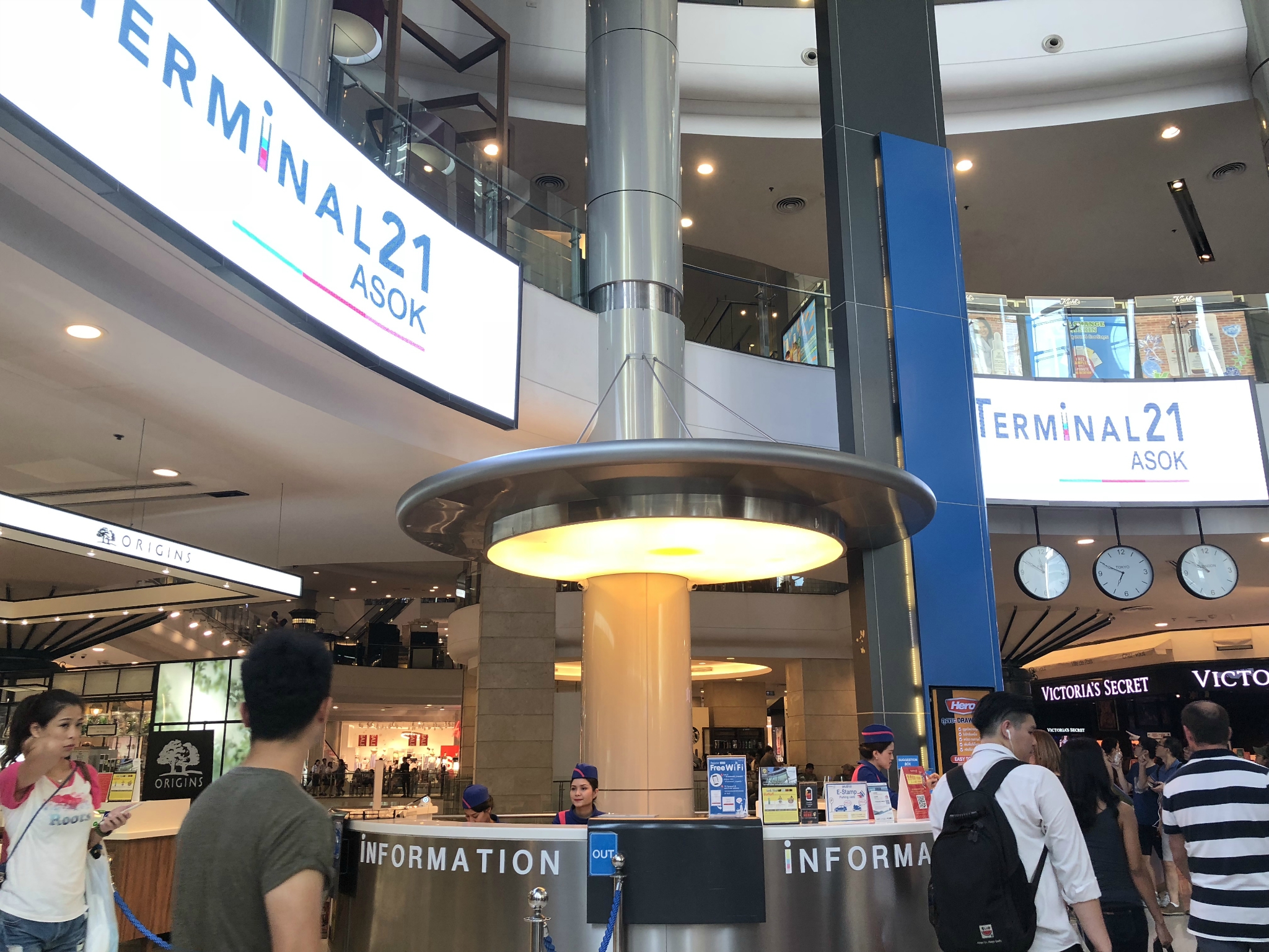 Terminal21”是一家以机场航站楼为设计概念的主题购物中心。各国品牌的东西可以在这里买到。而且每一层楼都有一个代表着不同国家的旅游主题,售卖的东西和装修风格都有着这些国家的特征。