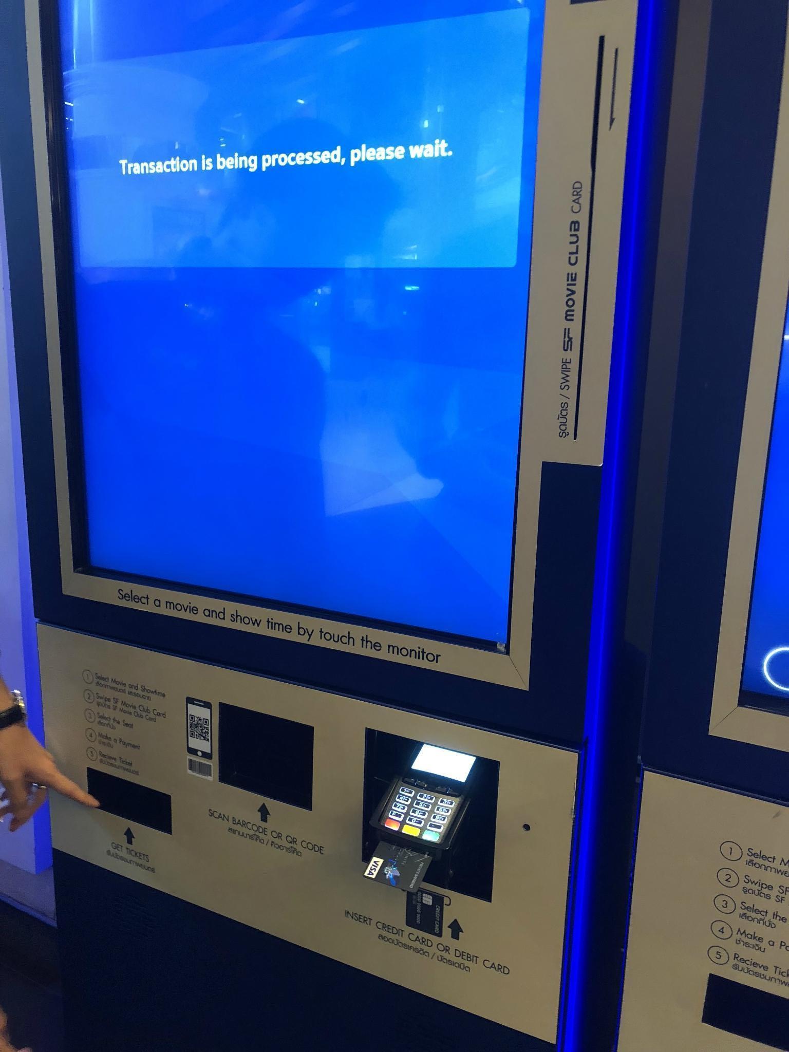 还是蛮方便的,只要有VISA卡,就可以自己的售卖机上购买电影票啦!里面的座位分很多种,价格差别很大!按摩椅的价格一张要上百块,我们选了中等价格的座位。
