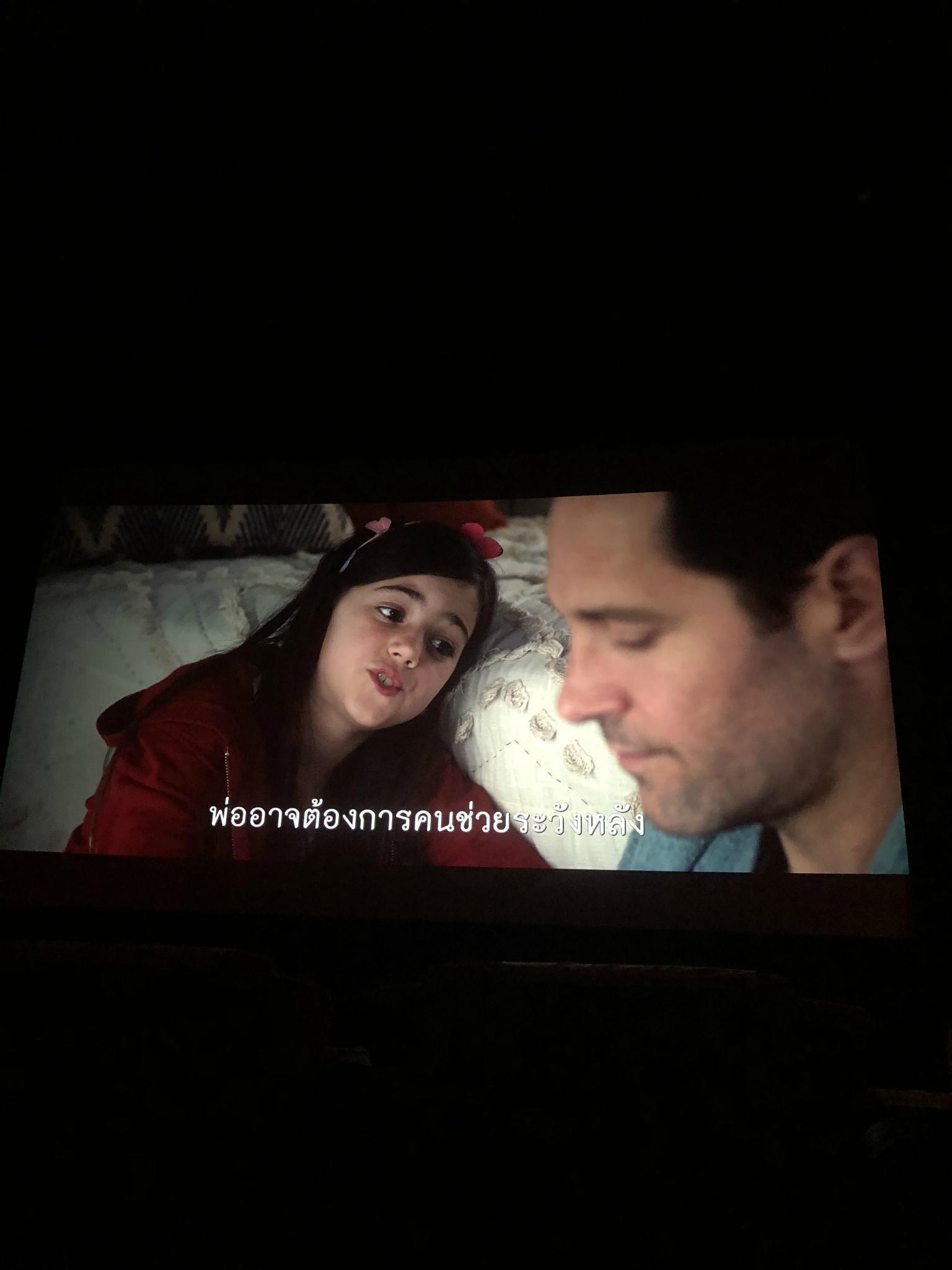 这里我必须说下,泰国电影真的很不一样。首先,看各种广告就看了半个多小时还没进入正题。然后突然灯一关,一片肃静,屏幕上投放起了泰国国王的照片。然后我们就感觉到旁边的零星的那几个人都齐刷刷地站了起来。我们也感觉跟着站了起来!然后看着屏幕唱完整首泰文国歌,大家又齐刷刷的坐下了。这下电影总要开始了吧~没想到又开始广告了起来~大概过了十几分钟,电影终于总算开始了!所以来泰国看电影,你得又充足地时间空留出来看一丢丢的广告!