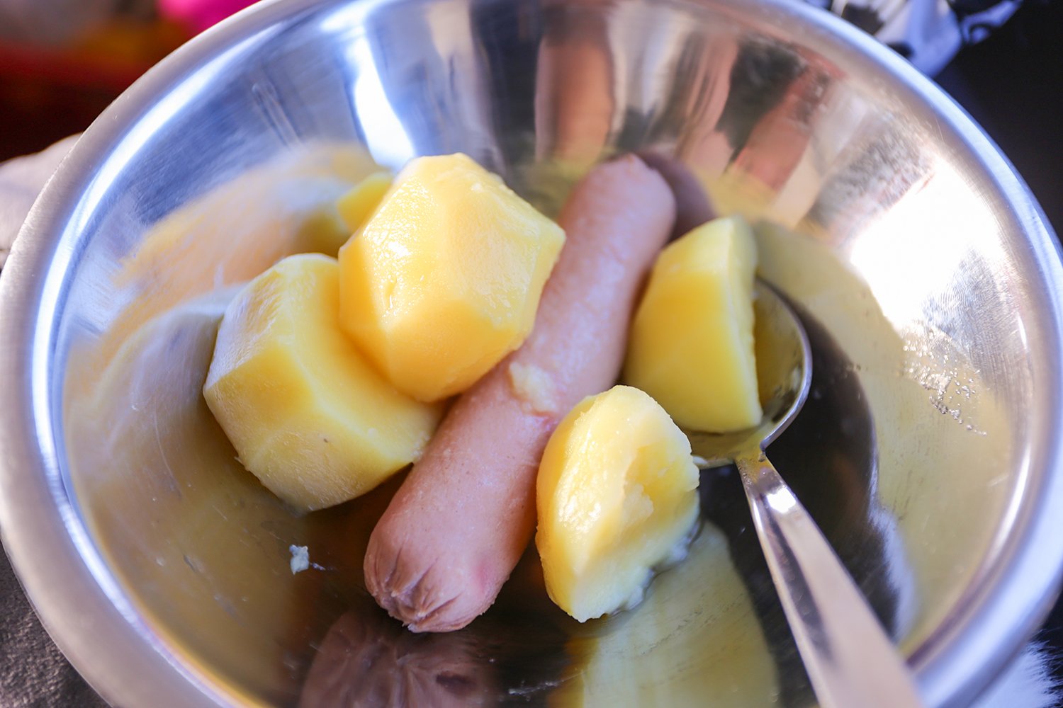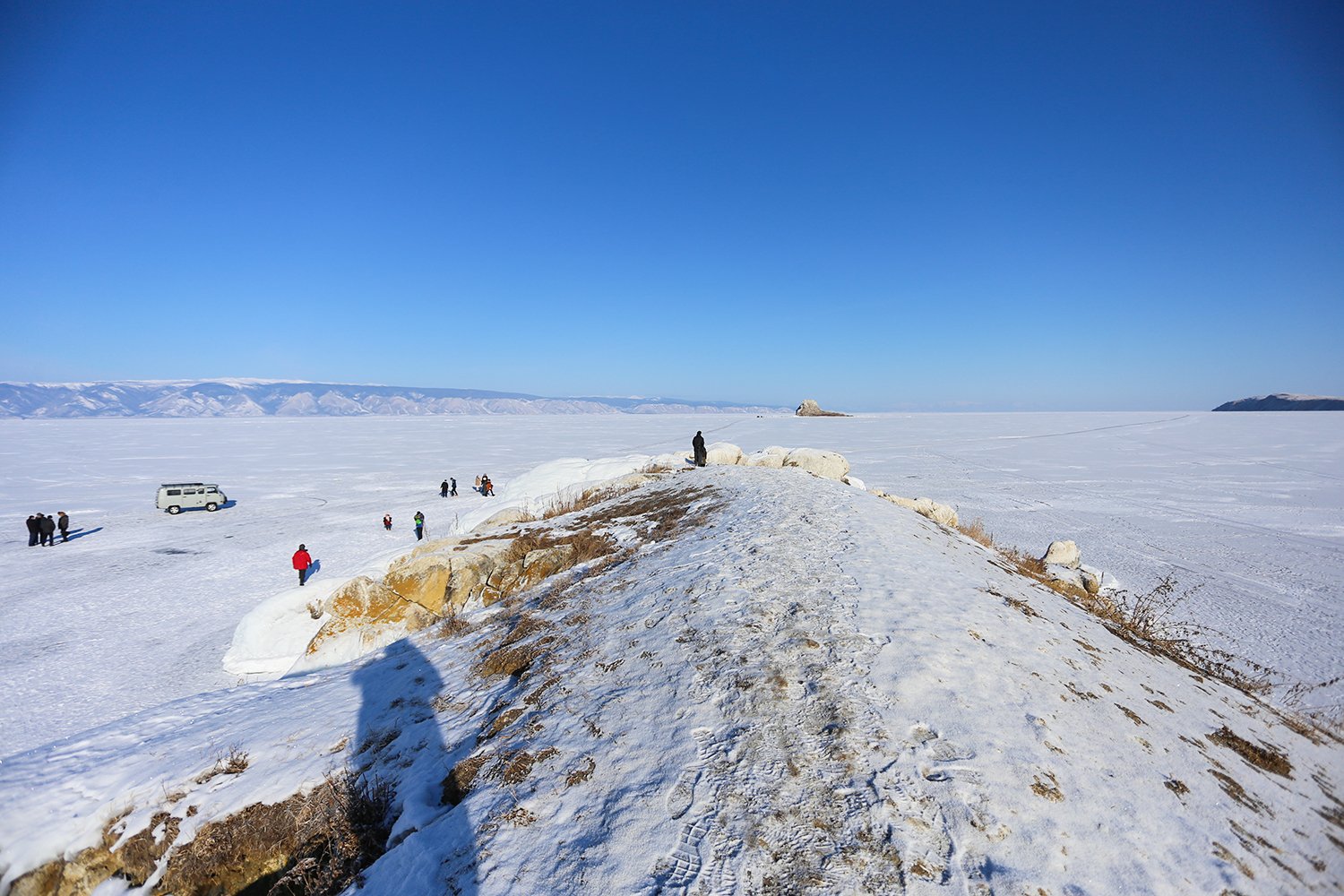 最后一站,奥利洪岛的最 北角 。先在车上吃午饭,午饭就是这样 orz 几块土豆一根香肠,然后还有一些面包。