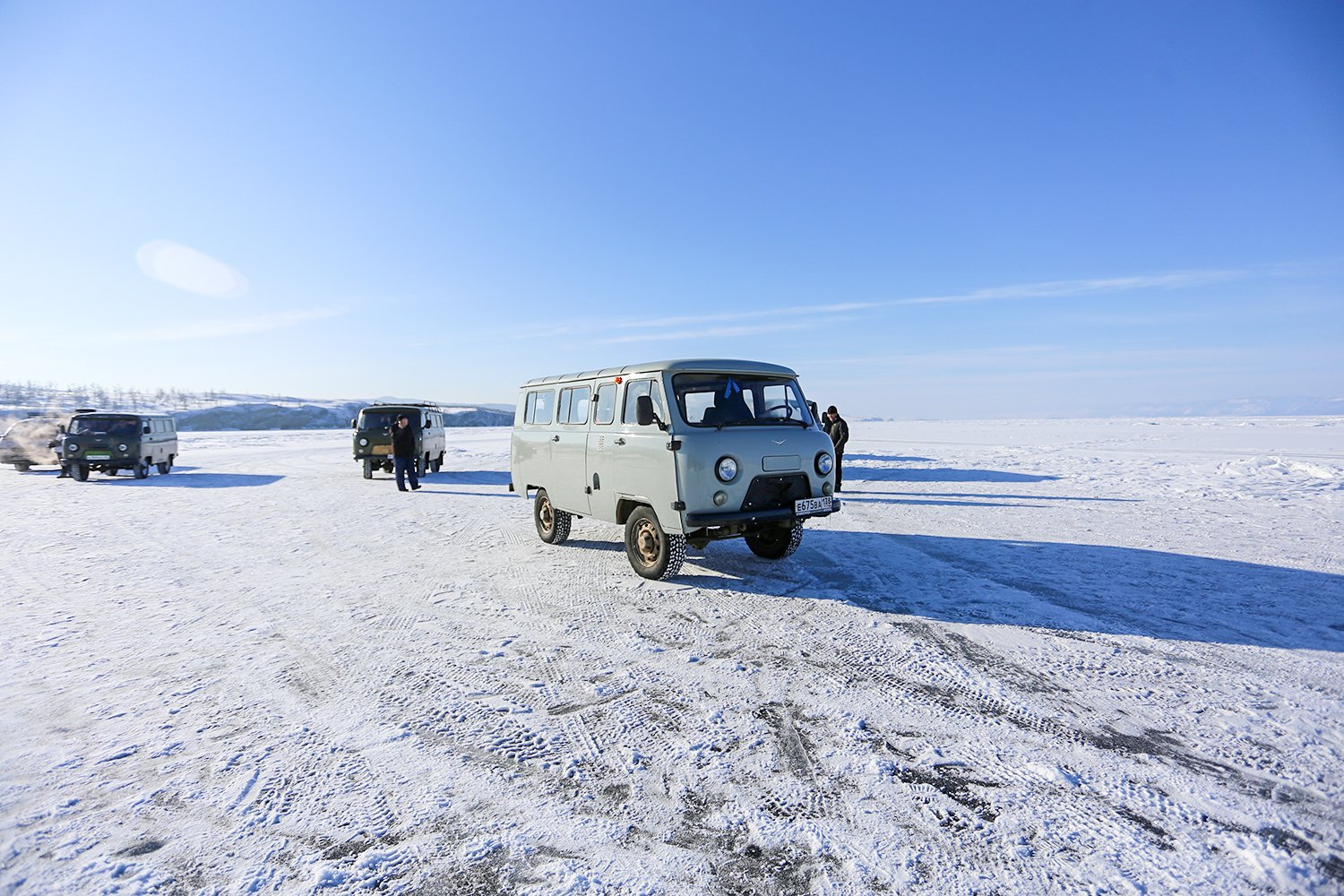 就是坐这个苏联式铁皮车直接在冰上飞驰。