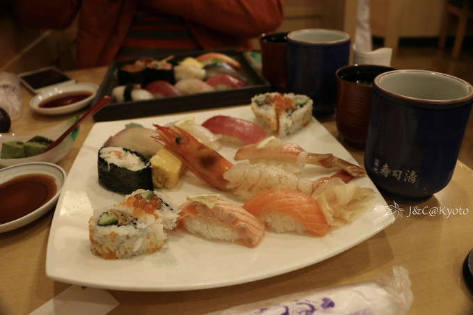 到这里, 宇治 半日就差不多结束了。我们回 京都 的路上又去买了抹茶点心和抹茶粉啥的,一路吃吃吃回去~回到 京都 站,就去了隔壁伊势丹楼上的筑地寿司清,一人扫了一份寿司定食下肚,又满血复活~