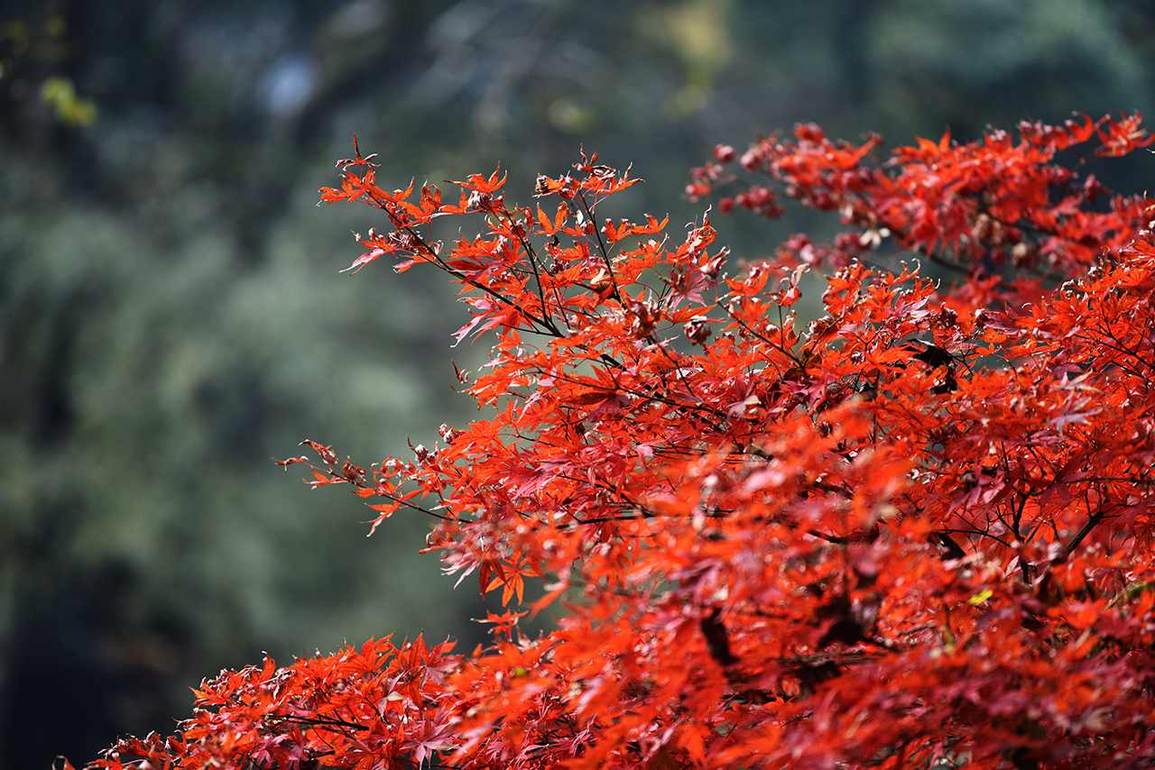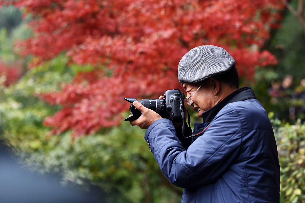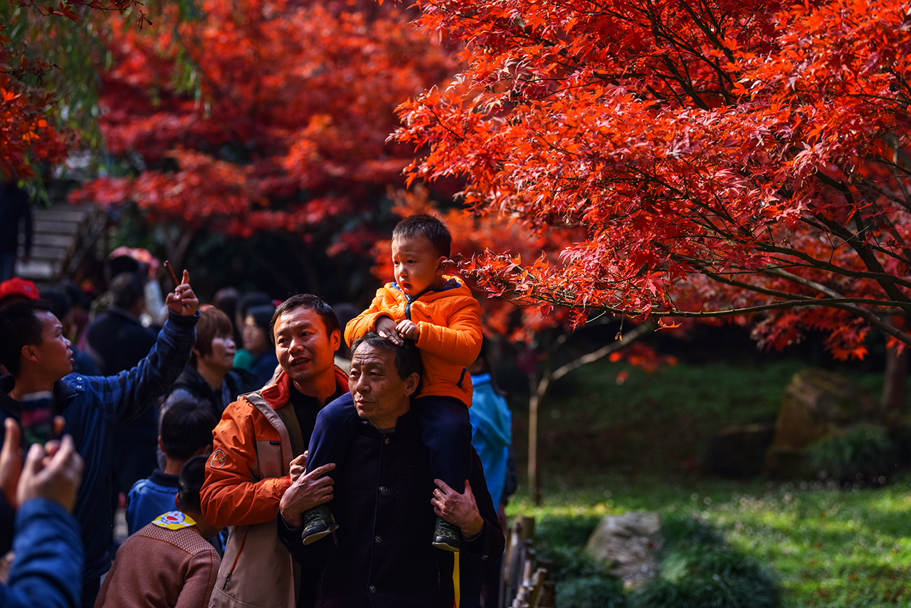 这个季节的岳麓山,枫叶已经开始变红。远远看上去,枫叶们红的,黄的,绿色的,层层叠叠,很是好看。