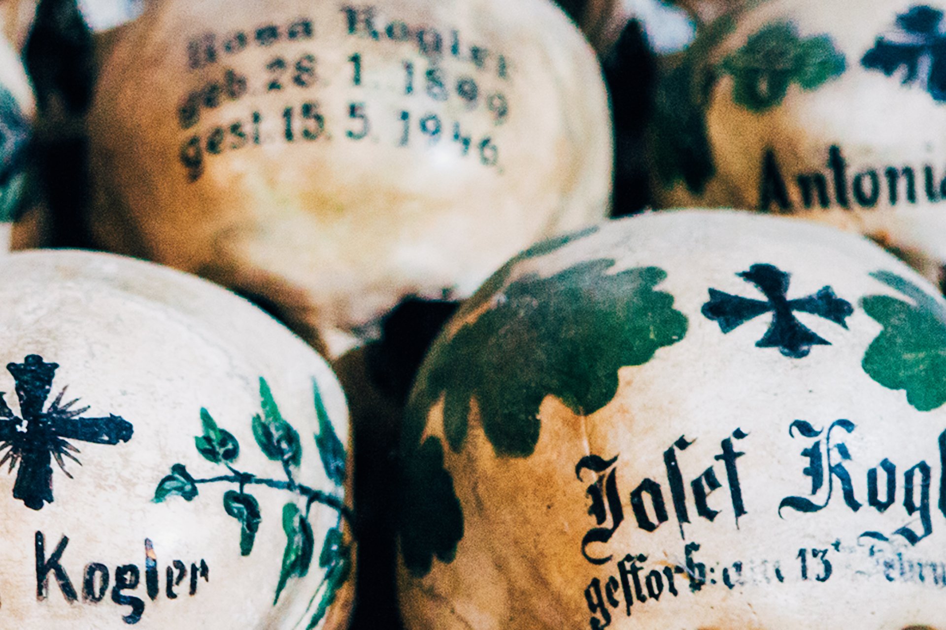所有的骸骨都经过清洗、消毒后留取头骨和大腿骨,在太阳下暴晒数周,使骨骼呈现出柔和的象牙色,再由亲属或专业的纳骨师绘出死者的名字、逝去的时间,再用象征光荣的橡树叶、象征胜利的月桂枝叶、象征生命的常春藤、象征爱情的玫瑰等植物进行精心的装饰后,陈列在纳骨堂里,供后人凭吊。