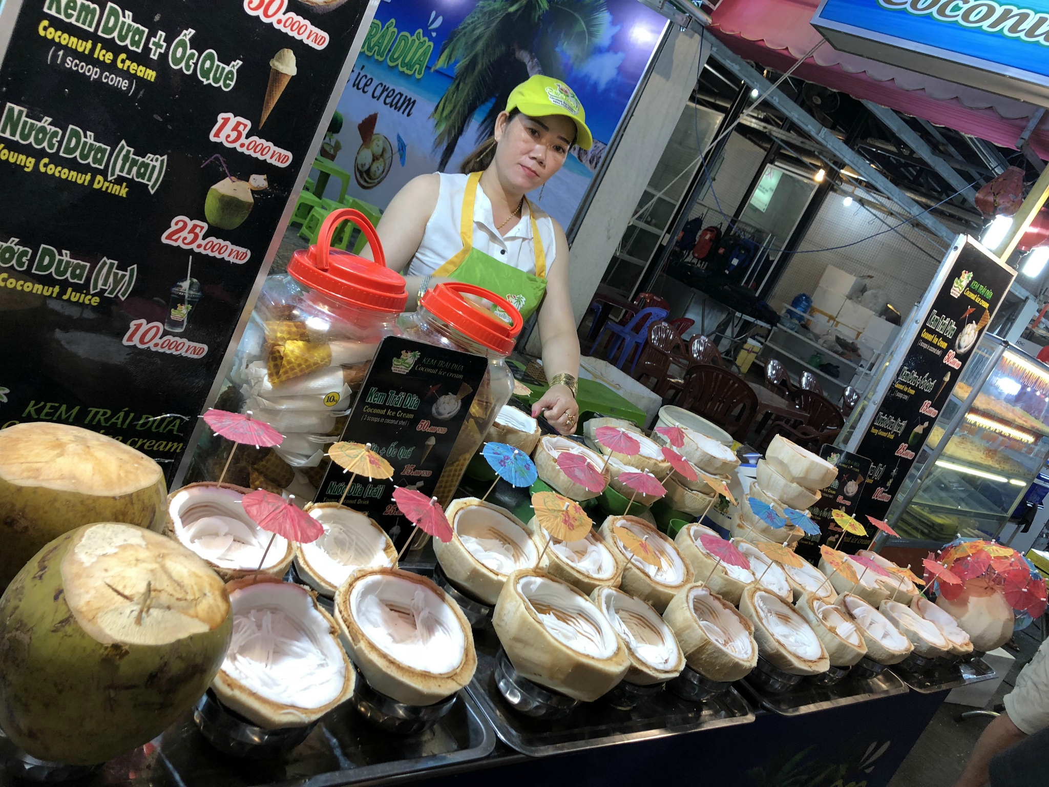 晚上来到阳东镇的市场,和普通的集市相差不大,就是多卖衣服,卖甜食的,路上会有很多品尝的坚果花生介绍,可以尝试一下,很甜,有点芝麻包围,分不同的Size不同的价格,记得在第三天的时候,本来需要买5才送一的,问了拿名片后决定继续探寻,但最后还是用剩下的越南盾买了4中大罐,大概9W一罐,我说 Oh So bad。准备走之时,小哥哥偷偷的送了一饼mini Size的,脸带微笑还说 Here's my little gift for you.❤ 说真的挺暖的,马泪都快流出来,所以我决定分享给大家,谢谢创造温暖的时刻,那情景还深刻的记得,祝生意兴隆。