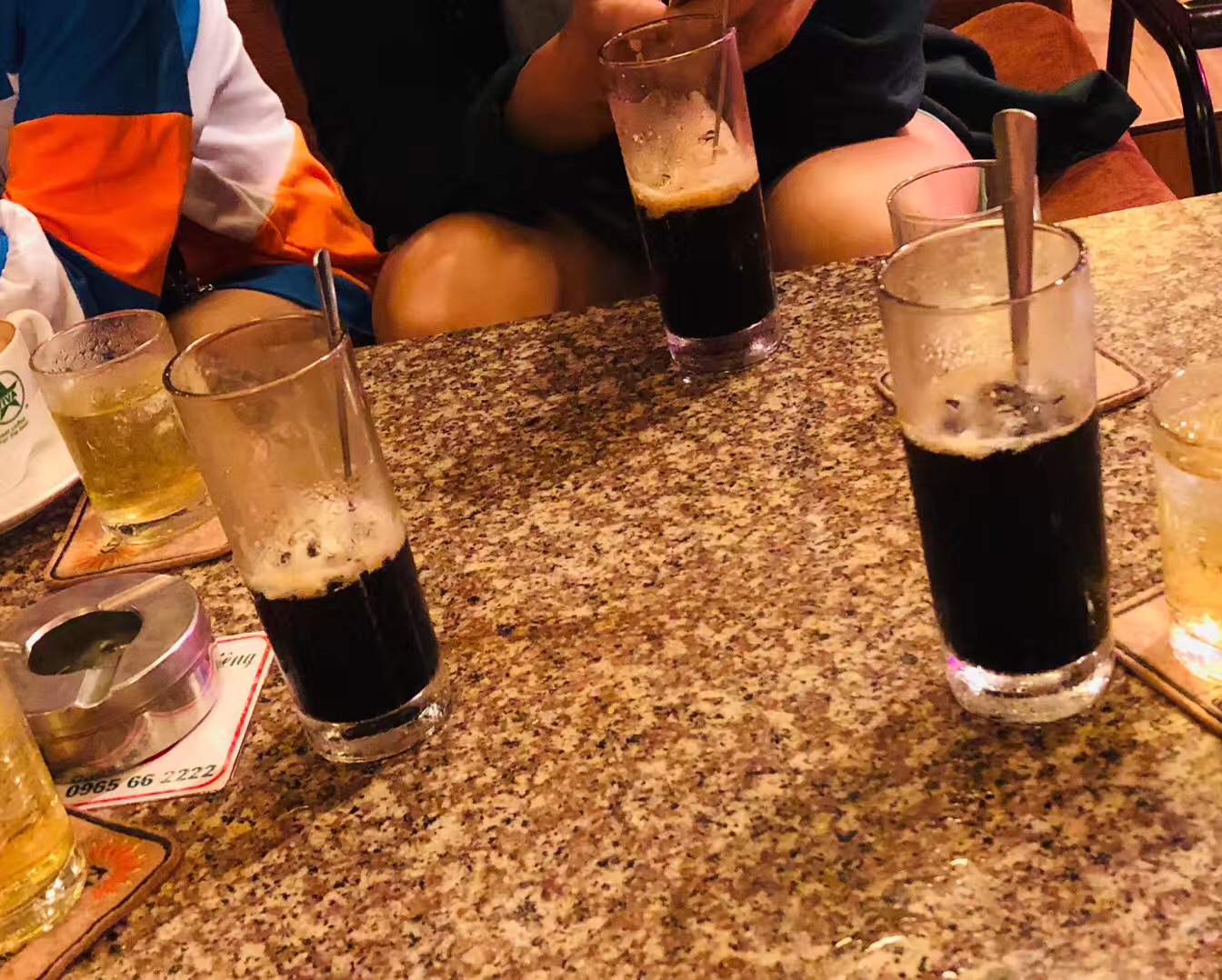 由于在第一天的行程时候,我们已经路过这里看好这里,第二天也就水道渠成的来到了这里,价格大多是6W一份,1.5W配冰咖啡,咖啡并不苦还非常的甜好喝,猪骨海鲜面的猪骨真的很大块,且海鲜也很丰富,汤底很甜,来到这里都很甜不咸,不知是骨汤甜还是配料,咖啡像是两勺糖,感受不了 espresso 的苦涩,像是喝甜的凉茶哈。