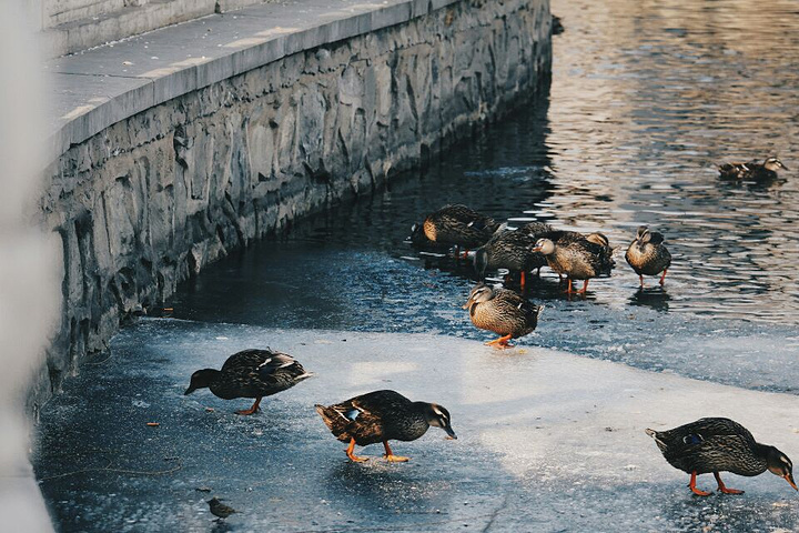 没有雪的北京,其实也有美景 西海放空指数:五颗星⭐⭐⭐⭐⭐ 当冬日凛冽的风吹散往日的喧嚣 周遭一切安静地堆叠出它本初的模样 没有什刹的熙攘 没有北海的华贵 西海就是这么安宁 但却让人很踏实 从什刹海地铁站站出来 沿着后海一条街往巷子深处走 从熙攘的酒吧到淳朴的民居 两种味道截然不同 有时你突然发现自己脚步逐渐放轻 或许就是因为不忍叨扰这份老北京的宁静 河面上已结冰 鸭子们慵懒的卧在冰面上过冬 猫猫也躲在丛林里 用一身绒毛抗衡着寒风 边走边端详着美景 可怜的一个毛绒娃娃 被遗落在角落 不知在它身上曾经过什么故事 就让来往行人自由揣测吧 拍摄建议: tips.1 其实越简单的生活场景越有味道 就比如沿河有一些民居屋外装饰就很有特色 像葫芦啊 旧自行车啊只要构图合适都可以成为美景 而且很有烟火气 tips.2 小动物拍摄 鸭子、猫咪、鸟……拍一些河边的巷子里的小动物还可以为萧瑟的冬景增添份生机 tips.3 橱窗拍摄 什刹海附近还是有很多文艺范的小店 橱窗摆设都还不错可以隔着窗户拍摄 也是别有趣味 后期建议 冬季用冷色调感觉更能凸显景物主体和整个环境氛围 路线 可以从什刹海地铁站下来从后海酒吧一条街穿过 即从后海到西海 也可以从积水潭地铁站c口出来从旁边巷子穿过到直接到西海 然后从西海沿河走到后海,顺便还能逛逛烟袋斜街、南锣 或者走到地安门,去秋栗香(地图搜索可以找到)买栗子吃(墙裂推的栗子) 另外秋栗香马路对面的糖葫芦也很好吃,去核的,还便宜