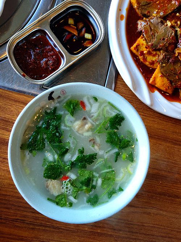 [种草][种草][种草]超爱的一家店[爱心] 📍 『焰海牛肉汤』 ⭐ 原来叫焰海牛头馆的; ⭐ 菜单翻开看着哪道菜都有食欲😋 ⭐主打牛肉,牛百叶、牛排、牛舌、牛筋、牛尾、牛肉汤,简直可以凑个全牛宴了[强] ⭐ 事实上今天点的2个菜也真的是很好吃,分量又大,现在都有点撑[害羞] ⭐牛腩焖豆腐看起来很辣的样子,其实只微微辣,牛腩切成大片铺在煎好的豆腐上,吃起来太过瘾了! ⭐炒筋头巴脑香辣干爽,绝对是筋头巴脑是主角,辣椒是配角,不像别家满盘子辣椒里面找筋肉[机智] ⭐20元一碗的牛肉汤也是量大实惠,中午饭点大部分客人都是奔着这牛肉汤来的[机智],可以加钱加汤加肉,特别适合一人食[1人食] ⭐ 以后来开发区就来这了,准备把菜单吃通关[机智] [环境]⭐⭐⭐⭐ [服务]⭐⭐⭐⭐