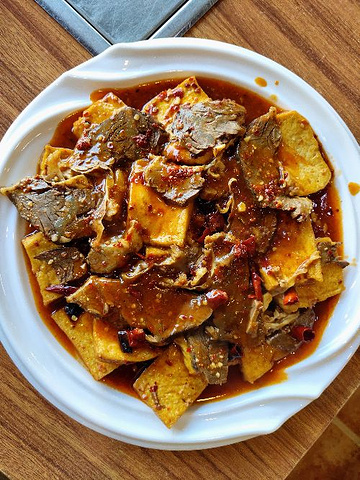⭐牛腩焖豆腐看起来很辣的样子,其实只微微辣,牛腩切成大片铺在煎好的豆腐上,吃起来太过瘾了