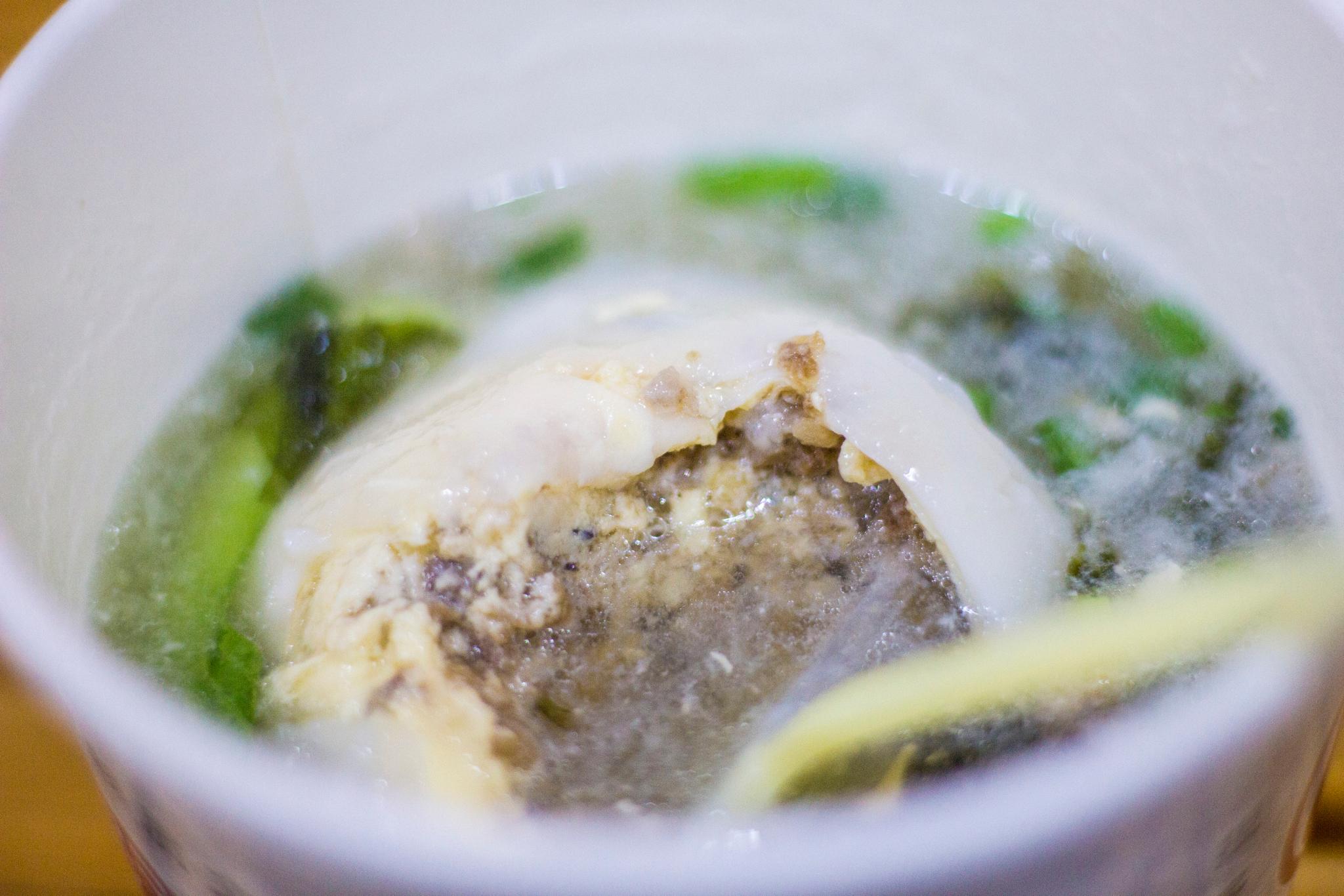 放入高汤中煮熟,才发现原来里面是塞入了非常多的肉馅,整个鸡蛋被撑的非常大,然而丝毫没有破损,鸡蛋完好的包裹着肉馅,佩服佩服,肉馅味道调和的也是非常棒的。
