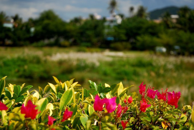 槟郎河景区是浓浓的乡村风光。大抵是大家都去槟榔谷了,这里游客很少。沿着河边走,不时看到小花儿,小草,还有村落里的人。从车流中离开,止步在这里,瞬间得到一种安宁。