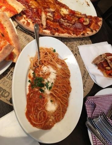 不过在莫扎特故居边上,倒是有一家网红店,正确来说,应该是欧洲人的网红店——L'Osteria ,主营披萨,在捷克也是有分店的。饭间抵达,人气旺的不行,幸好我们来的时候还没排队,刚落座没多久,外面就开始排起大队了。