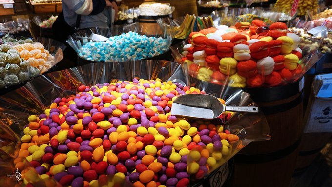 在布拉格,还有一家Captain Candy糖果店足以吸引你,就在哈维尔市场的附近,在店门外的空气中就飘来一阵阵甜蜜的味道,店内色彩鲜艳的各式糖果看着就赏心悦目。 大多糖果就是软糖性质的,而且造型的简直巨无霸,目测起码也得有百来种样式,我这种纠结症是选不好的,反正也要减肥嘛...确实没有掏钱啦。