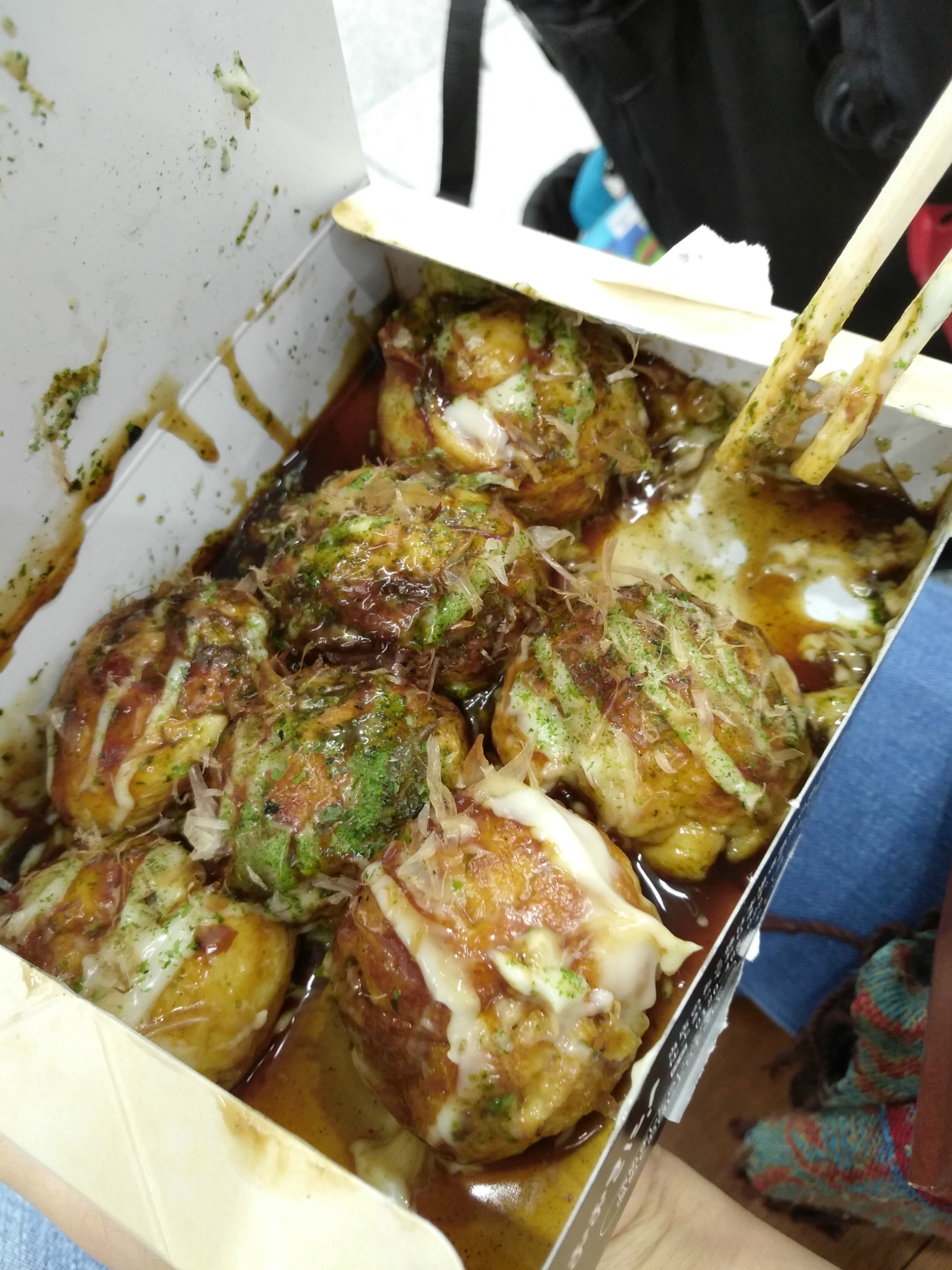 新大阪站一出来买了章鱼丸子, 看着卖相一般,味道不错