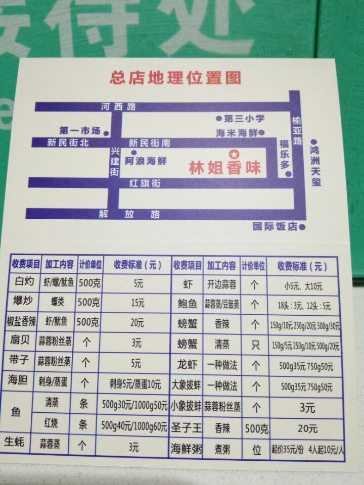 他们家的海鲜加工都是明码实价的写在单子上,绝对不会乱收费的。