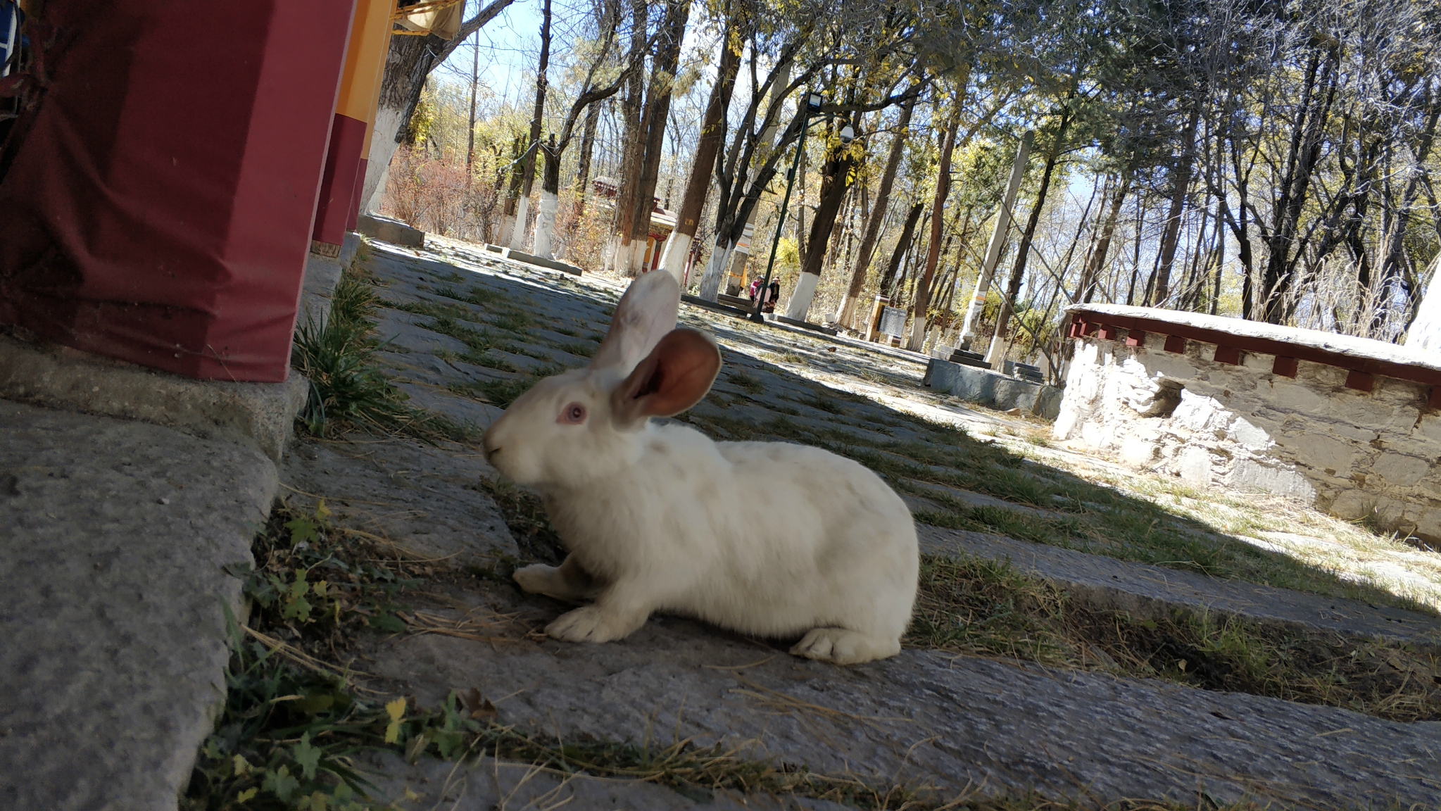 一只不怕人的兔叽........大概见的人比我们还多吧
