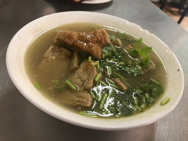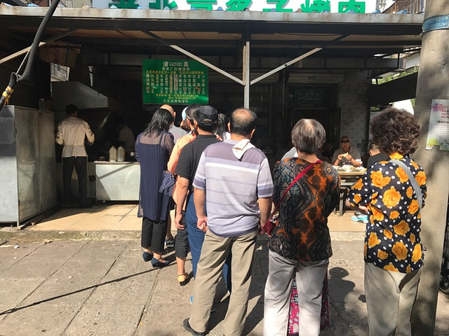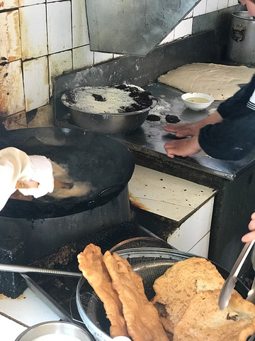 几个朋友都给推荐了这家店,于是起床后直奔而去。到的时候看到门前的人们排着大队,看样子都是周边的中老年居民。 一人占位置,一人排队,分工明确后顺利买到了双倍糖油条,味道还不错,但也没觉出来比我小时候吃的普通糖油条强到哪去。至于豆泡汤我吃着不是太习惯,谁让我来晚了没抢到豆腐脑呢。 三星半,属于路过随便吃吃,没必要专程来吃的早餐摊。