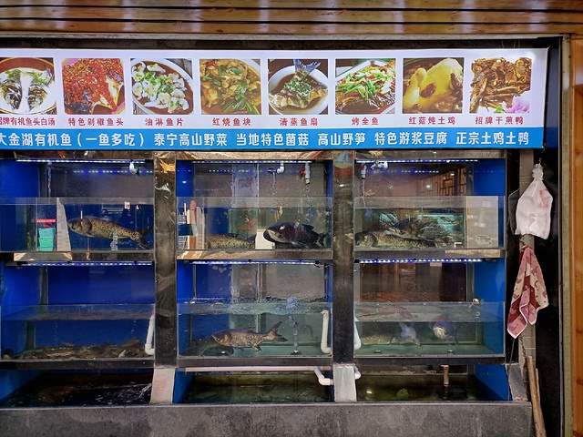 老渔夫有机鱼味馆,位于泰宁古城水车附近灵秀商城大门,步行一分钟即到,老板娘非常热情好客,给我们推荐了他家的金牌私房菜,当地的野菜,大金湖的有机鱼,鱼是鲜活的在鱼缸里大小自己挑选,一鱼可以多吃,一条鱼可以做三种口味,鱼头烧汤,鱼肉油淋鱼片,鱼尾红烧,鱼头汤非常鲜美,红烧的鲜香入味,还有特色干煎鸭,当地菌菇,野菜,特色小吃,等等……………………有的菜名记住的,我们一同去的小伙伴都说好吃,总之每道菜都很合大家口味,菜价也不贵,明码标价,每个菜都有价格,确实不错这家店铺非常值得推荐给朋友们,网友门大家可以去品尝品尝,