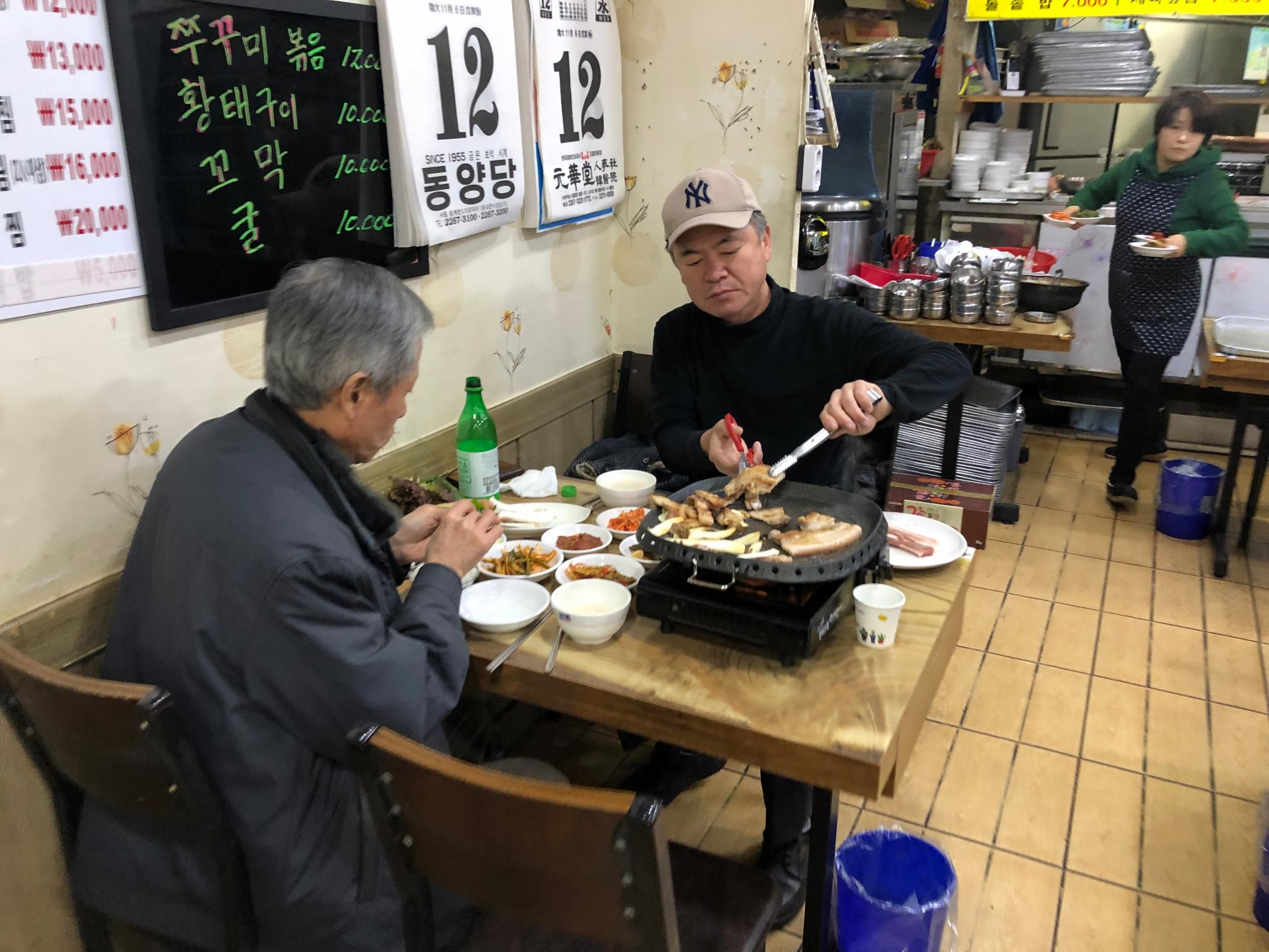 在这里基本上都能吃到韩国的特色小吃,米肠,紫菜包饭,韩式拌饭(不是石锅拌饭哟)、大酱汤,推荐脊骨汤,味道真的不错。这里的韩式烤肉也是有很多老人来光顾。