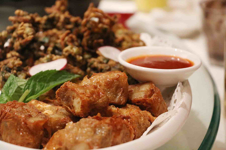 又到年末年会时,每年都为在哪里聚餐发愁,正巧听说仙岳路鼎宴新店试营业菜金7.8折,有这好事怎能不去,好不容易熬到下班立马出动~ 跳跳鱼,煲的做法更能保留食物的原味,佐料渗透到鱼体内,鱼肉软化酥烂,肉质粘糯,汤味清纯,口感鲜美。 筒骨炖手工豆腐,店内热门菜品,豆腐早已吸收了大骨汤中的精华香气浓郁,久炖不散口感紧实。 神仙猪脚鸡,上桌热气腾腾看着就过瘾,锅中猪脚软糯香醇,鸡肉香浓软烂,吃上一口直呼过瘾,就连底下粘稠的汤汁都不愿错过,此时配一碗饭那真是极好。 桂花虾姑柳,手残星人再也不用担心剥虾姑皮了,搭配绿豆芽、鸡蛋一起炒口感也十分清新,有种小家碧玉的灵秀之感。 海蛎炸和闽南炸鸡卷,典型的闽南特色小吃,双拼可以尝到更多的风味,配上甜辣酱,满满的地方风味。 南极冰草,仔细看茎上亮晶晶的真好似冰晶,颜色翠绿嚼起来脆生生的,比起其他蔬菜类真是棒太多了,真是做沙拉的不二之选,冰草和焙煎芝麻酱很配哦,清爽又不会有负担。 冰海传说,自带闽南风的刺身拼盘,鲜嫩的鲍鱼,肥美三文鱼, 清脆的土笋冻通通呈现在面前搭配酱油芥末同食风味尤佳。 基围虾,表面平淡无奇,吃一口虾肉嫩弹川味突出,居然小有惊喜。 金牌果蔬典型日式天妇罗的做法,地瓜、茄子、芋头裹粉不会很厚,油温把控的也到位,没有多余的油腻感 翔安地瓜粉条没有人不喜欢吧,粉条爽滑不失嚼劲,汤底厚重鲜美,配料丰富,既能当菜又可以当主食,比起米饭、面食用来饱腹我更喜欢这个,吃个三碗都不在话下。