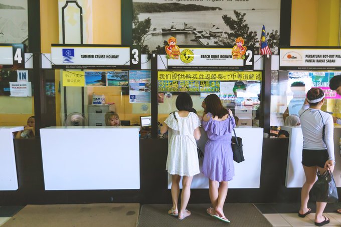 码头的售票大厅,里面有大概十个窗口,分别是不同快艇公司。随便找一家买船票去就行了,一个岛23马币,两个岛33马币的船费。7.2马币的登岛税。各家价格略有差别,可以砍价。然后顺着对应的logo去等船就行了。回程是预约好的时间,上同一家公司的船就行。