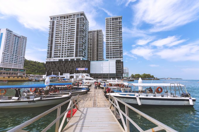 从酒店出发去Jesselton Point码头,大约30公里,开车40分钟左右。其实这家码头就在亚庇市中心,如果住在亚庇市区的话步行过来特别方便。