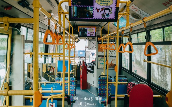 地图显示27分钟,但是实际上,我们一坐上车,就感受到澳门公交车的速度了,那叫一个“风驰电掣”。从澳门半岛市区到氹仔官也街,本来27分钟的车程,不到15分钟就到了。路上我们想拍一下公交车内部照片,但是碍于巴士急速前进,车身一直晃来晃去,怎么都拍不稳一张公车照片。我对司机只有俩词儿:佩服!