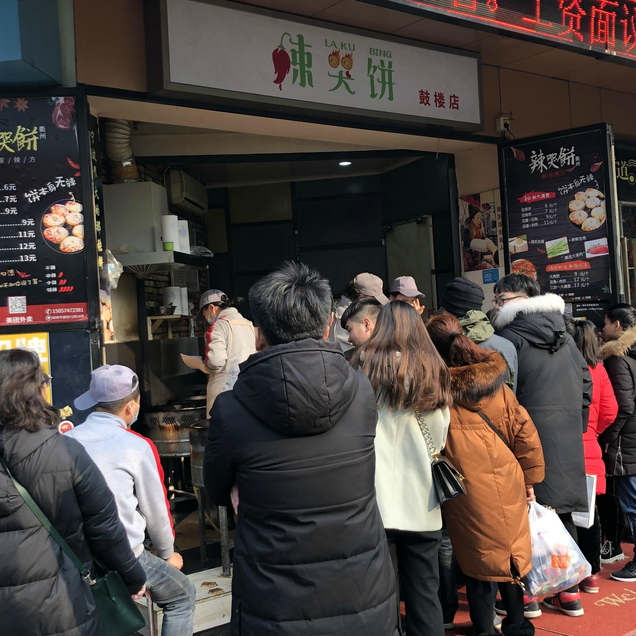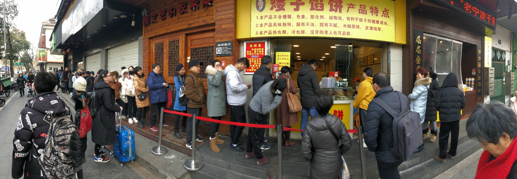 这家店叫矮子烧饼,无意间路过看到的。排队的长度至少有20-30人,由于晚上要赶飞机回家啦,来不及尝一尝它的美味了~