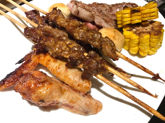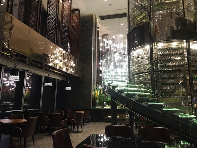 希尔顿的酒店自助,团购买的是138 位置,在希尔顿酒店的33层,可以直接坐直升电梯上去。 环境,在33层楼,可以看到下面的夜景,还是很不错的,只不过玻璃反光,不太好拍。整体布置的还不错。 自助区域有水果,沙拉,面包,糕点,茶水,还有烧烤,烧烤是会烤好后送上来的,最喜欢的是烤牛排,牛排很嫩,味道不错。整体来说风景不错,就是东西种类少了点。