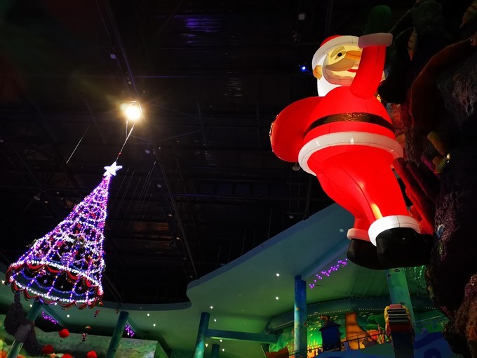 神秘的圣诞新年氛围,超大的圣诞树和圣诞老人