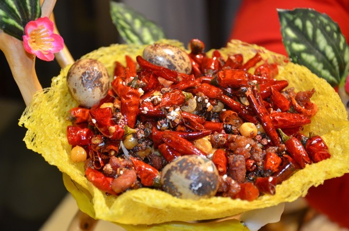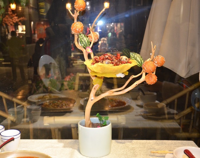 糖油果子 四川 地道的街头小吃代表,摆盘真的是花了不少心思,当真是巨作,树形摆盘,将糖油果子放置其树枝上,似乎真是结出来的果实,趁热吃味道极好。