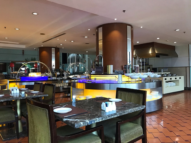 最早的天津市五星级涉外酒店,喜来登已经到期不在管理,现在叫燕园,其实这个地方就叫:燕园,酒店看着就有年代感,也是一种怀旧风格吧。自助餐厅在一楼,进门就看了,自助餐厅该有的都有,还有麻辣香锅,三文鱼金枪鱼几乎不限量,烧烤也有青口和大虾,也有生冷大虾,甜品相当不错,酒店自己做的,炒菜也比较丰富,服务很好!
