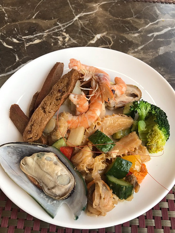 ...不限量,烧烤也有青口和大虾,也有生冷大虾,甜品相当不错,酒店自己做的,炒菜也比较丰富,服务很好