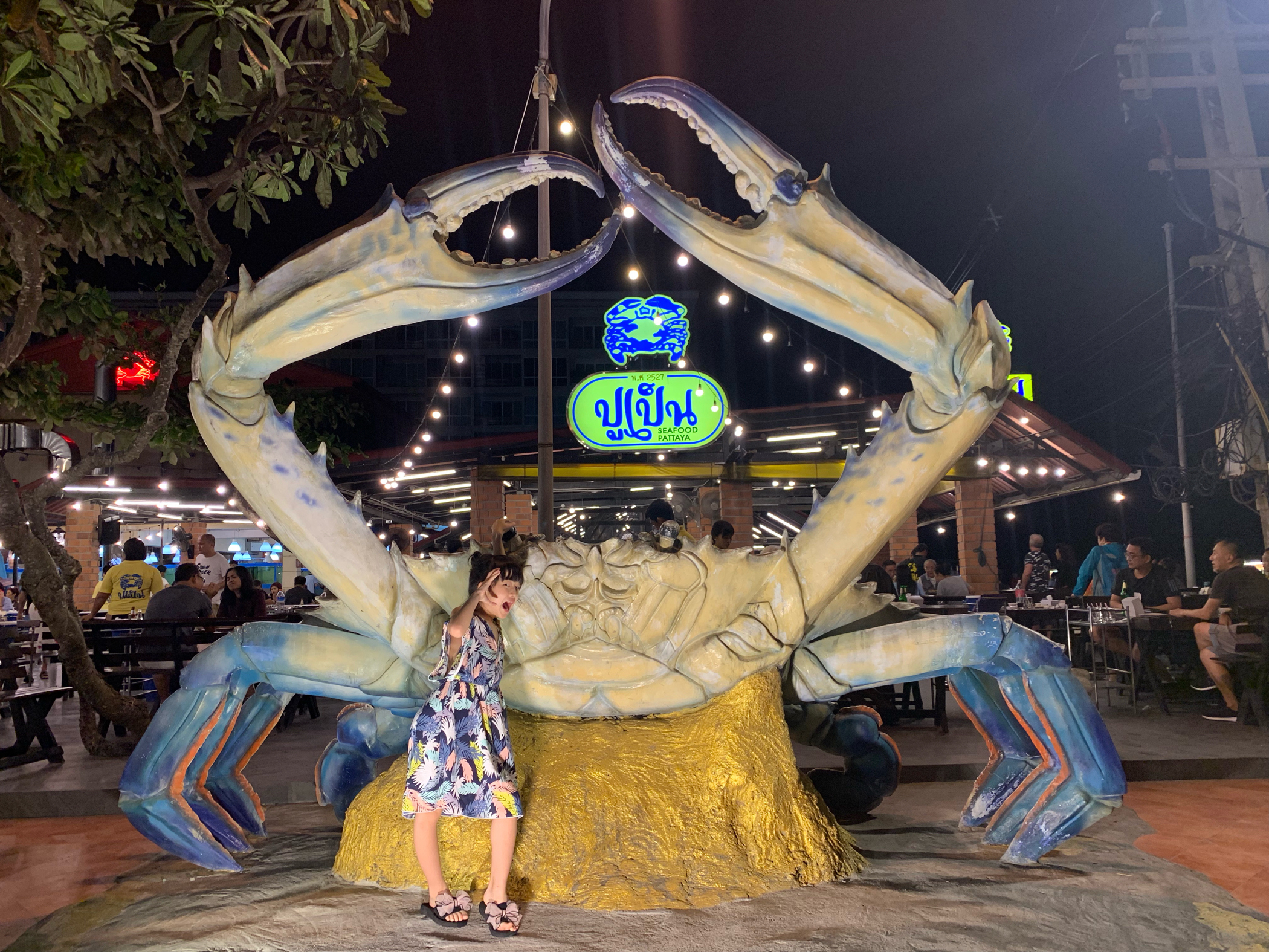 从楼下打了一辆taxi到吃大螃蟹的地方,200B。在芭堤雅挺多出租车都是不达表只议价的,人多果断打车啊,做双条还是不能直达帕山顶